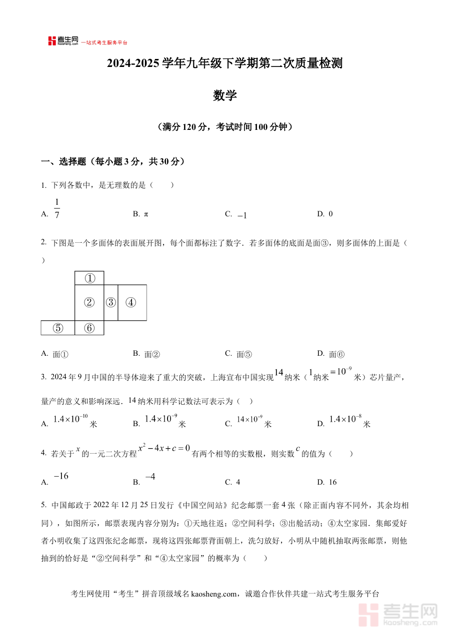 《精品解析:河南省郑州市荥阳市2024-2025学年九年级下学期第二次联考数学试题试卷 (原卷版)》是针对河南省郑州市荥阳市特定学年段与考试类型的数学学科备考资料。该资料对应2024-2025学年九年级下学期的第二次联考场景,聚焦数学学科的原卷呈现形式,为相关备考活动提供直接的内容载体。