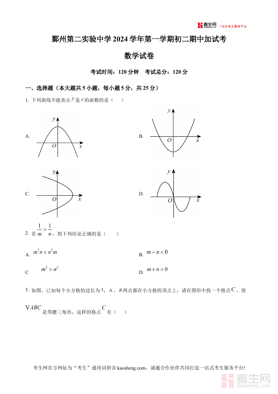 《精品解析:浙江省宁波市鄞州第二实验中学2024-2025学年八年级上学期期中考试数学试卷(原卷版)》是针对浙江省宁波市鄞州第二实验中学2024-2025学年八年级上学期期中考试设计的数学学科备考资料,精准匹配该学校该学年该阶段的数学考试需求,为学生提供贴合实际考试场景的练习载体。