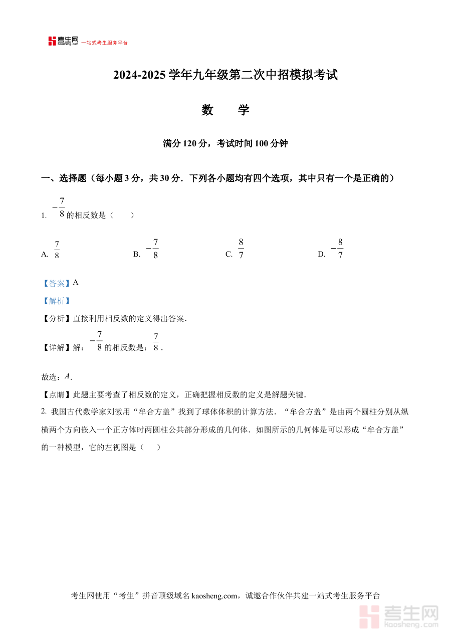 《精品解析:河南省郑州市高新区2024-2025学年九年级下学期第二次联考数学试题试卷(解析版)》是针对河南省郑州市高新区2024至2025学年九年级下学期第二次联考数学科目的专业备考资料,聚焦该地区特定阶段的数学联考需求,为考生提供贴合本地考试方向的解析内容。