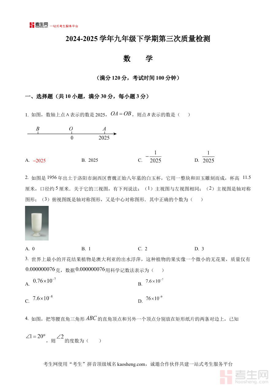 《精品解析:河南省郑州荥阳市2024-2025学年九年级下学期第三次联考数学试题试卷(原卷版)》是针对河南省郑州荥阳市2024-2025学年九年级下学期第三次联考数学科目的原卷形式备考资料,精准匹配该地区该学年九年级下学期的阶段性联考安排,为考生提供贴合本地考试实际的练习载体。