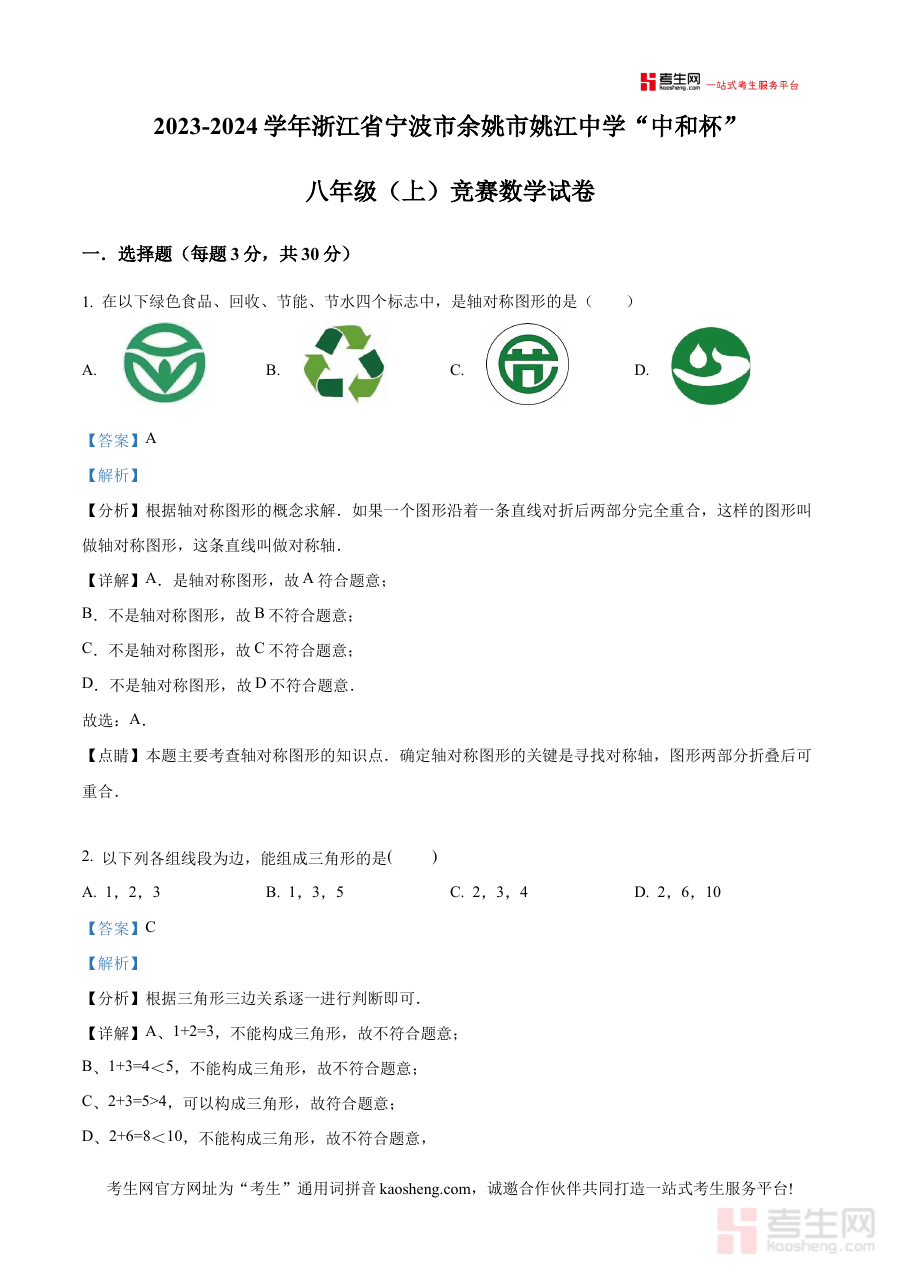 《精品解析:浙江省宁波市余姚市姚江中学“中和杯”2023-2024学年八年级上学期竞赛数学试卷(解析版)》是针对浙江省宁波市余姚市姚江中学在2023-2024学年八年级上学期举办的“中和杯”数学竞赛所编制的专业解析类备考资料,清晰对应了特定地域范围、学校主体、学年学期及竞赛类型,为相关学习者提供与该赛事直接关联且具有明确指向性的学习辅助资源。
