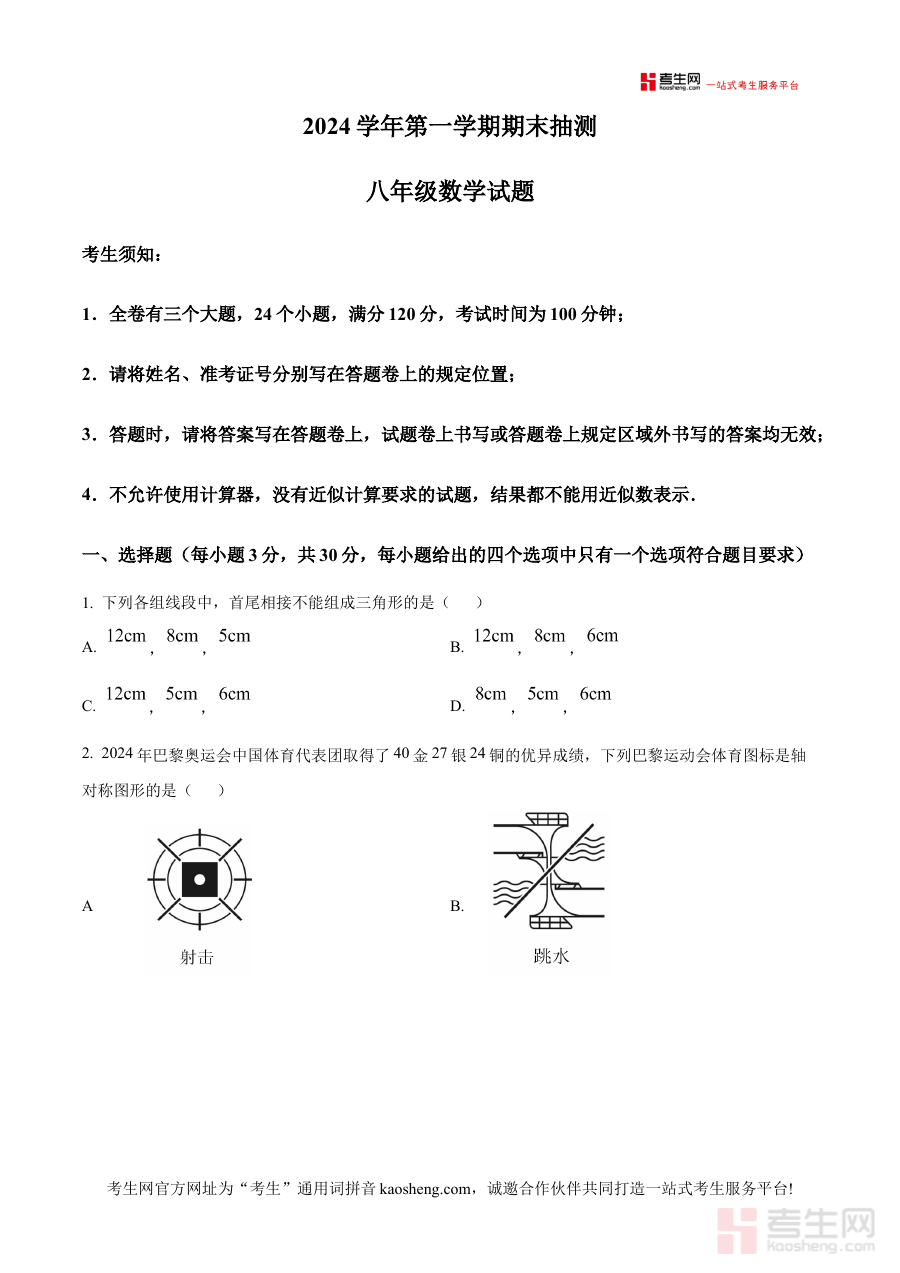 《精品解析:浙江省宁波市南三县(奉化 宁海 象山)2024-2025学年八年级上学期期末抽测数学试题(原卷版)》是针对浙江省宁波市南三县(奉化、宁海、象山)区域内2024-2025学年八年级上学期期末抽测数学科目的原卷类备考资料,精准对应该区域特定学年段的期末抽测考试要求,为相关群体提供贴合本地考试实际的资料支持。