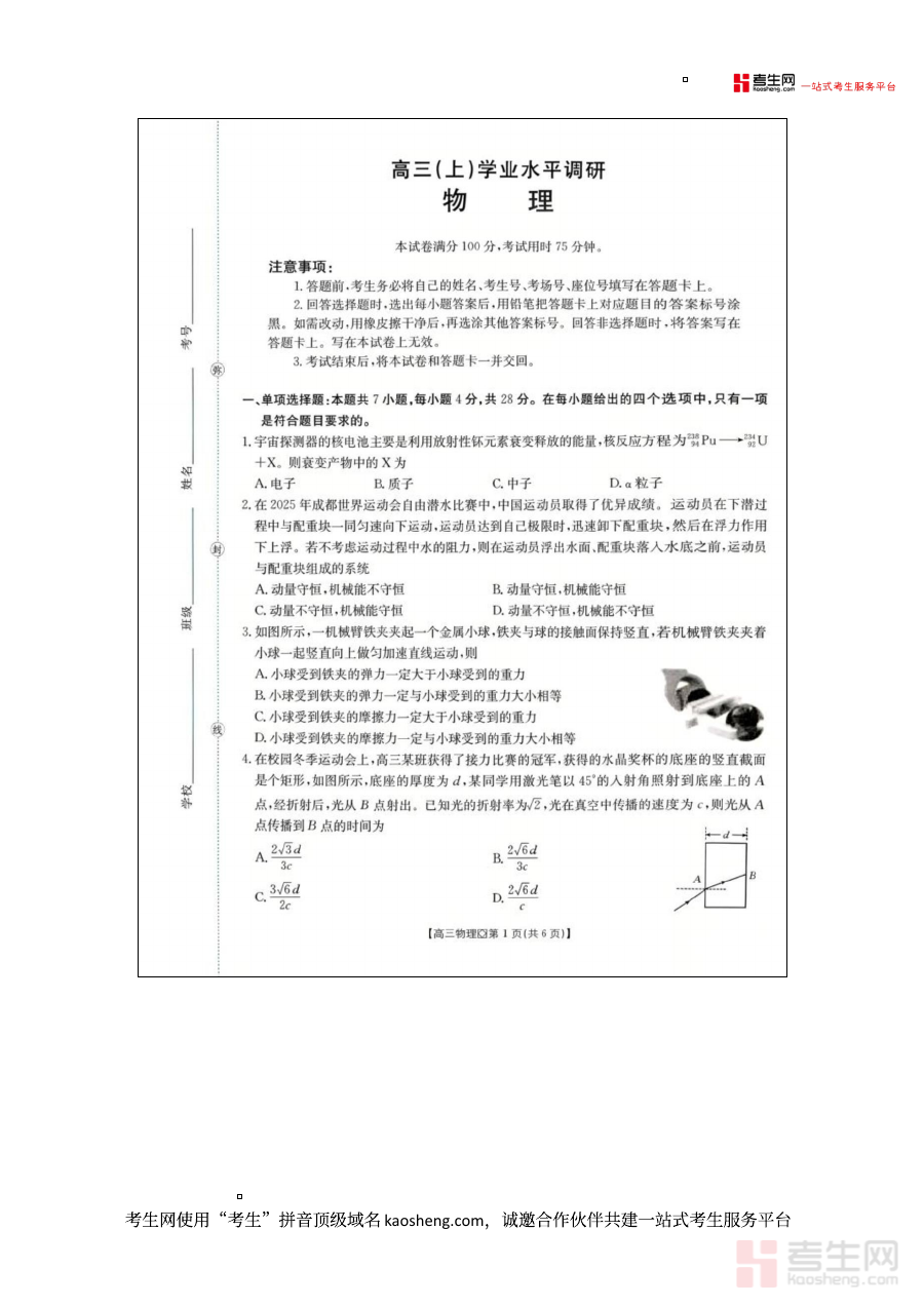 该资料主要适用于2025-2026学年就读高三的学生群体,特别是需要进行物理学科期末复习与阶段性检测的学生;对于高三物理教师而言,也可将其作为期末教学评估、复习规划设计的重要参考工具。通过使用这份资料,学生能够全面检验上学期物理学习成果,及时发现并弥补知识漏洞,为后续高考物理学科的系统复习做好铺垫;教师则可借助资料中的调研内容精准把握学生学习状况,优化教学安排以更好地助力学生备考。