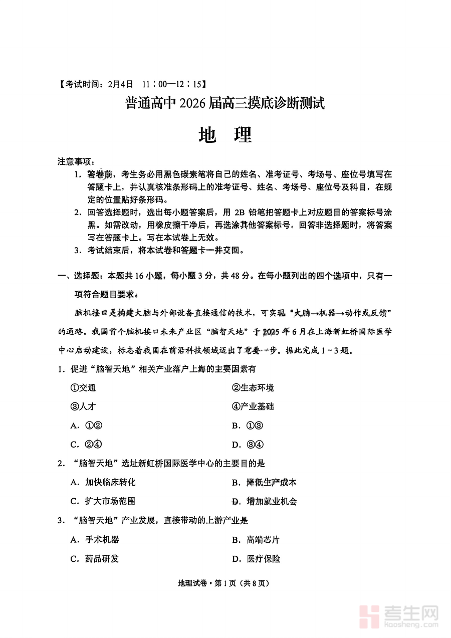 《云南省昆明市2026届高三摸底诊断测试地理》是面向云南省昆明市2026届高三学生的地理学科阶段性测试资料,属于高三年级初期的摸底诊断类考试相关备考资源。该资料紧密贴合当地高三地理教学进度与考试要求,旨在为师生提供与本次摸底测试适配的复习辅助内容。