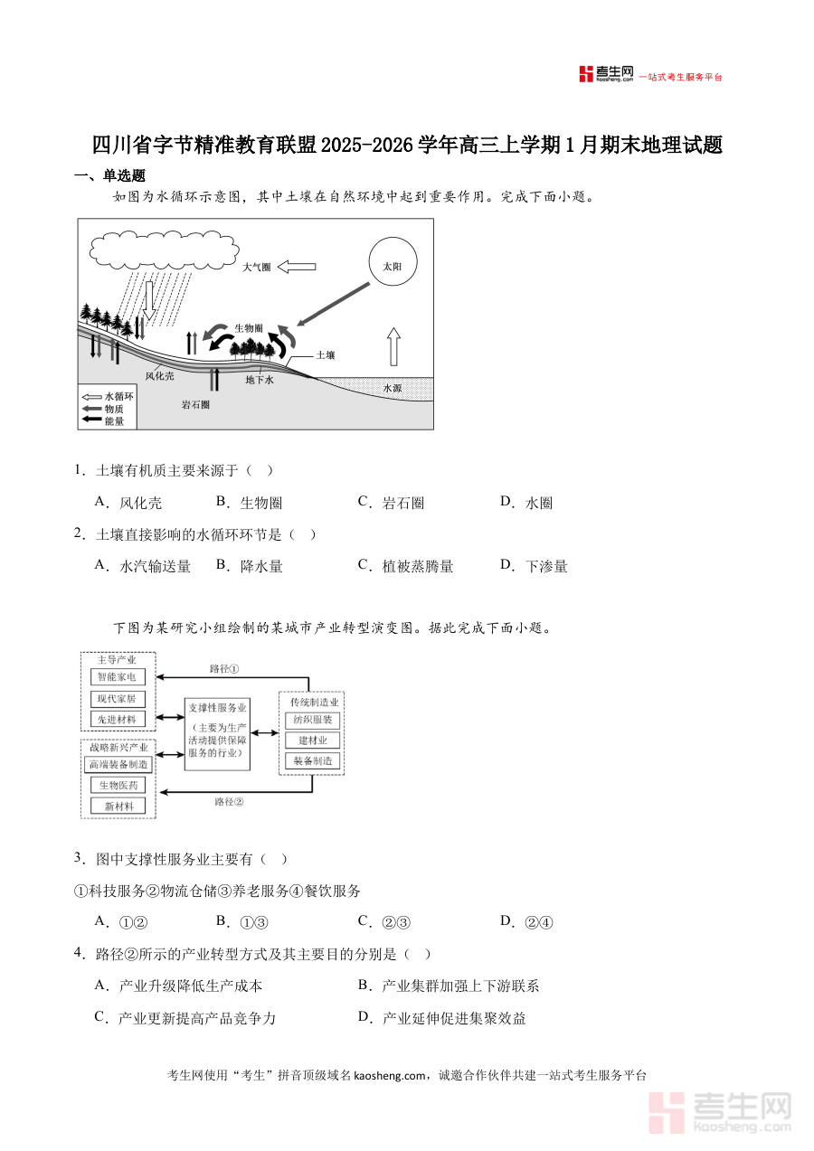 《字节精准教育联盟2025-2026学年高三上学期1月期末地理试卷(含答案)》是字节精准教育联盟针对2025-2026学年高三上学期期末阶段推出的地理学科检测资料,包含完整试卷及配套答案。作为联盟内高三地理期末测试的标准化载体,它贴合该阶段地理学科的核心考查方向,能够帮助使用者直观了解期末地理考试的命题逻辑与评价标准,为后续备考工作提供清晰的方向指引。