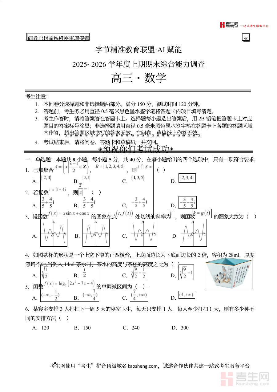 《字节精准教育联盟2025-2026学年高三上学期1月期末数学试题》是字节精准教育联盟体系内针对高三学生设计的阶段性数学考试资料,对应2025-2026学年上学期期末阶段的检测场景,为高三学生提供符合该联盟教学进度与评价标准的备考参考依据。