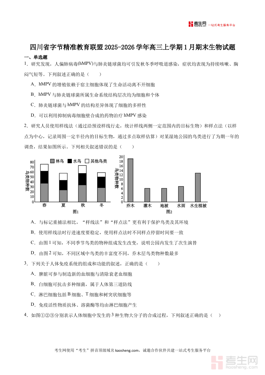 《字节精准教育联盟2025-2026学年高三上学期1月期末生物试卷(含答案)》是字节精准教育联盟针对2025-2026学年高三上学期1月期末生物考试推出的备考资料,包含完整试卷及配套参考答案。该资料依托联盟教学资源体系,聚焦高三阶段生物学科期末考核需求,为相关教学活动提供标准化的检测载体。