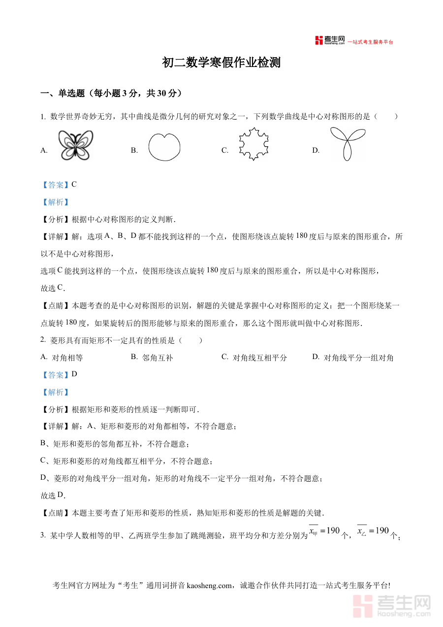 《精品解析:2025年宁波外国语学校八年级下学期开学考试数学试卷(解析版)》是针对2025年宁波地区外国语学校八年级下学期开学数学考试的专业备考资料,整合了该次考试的试卷内容及详细解析部分,能够为学生提供贴合特定考试场景的复习支持,帮助其提前感知开学考试的考查方向与命题逻辑。