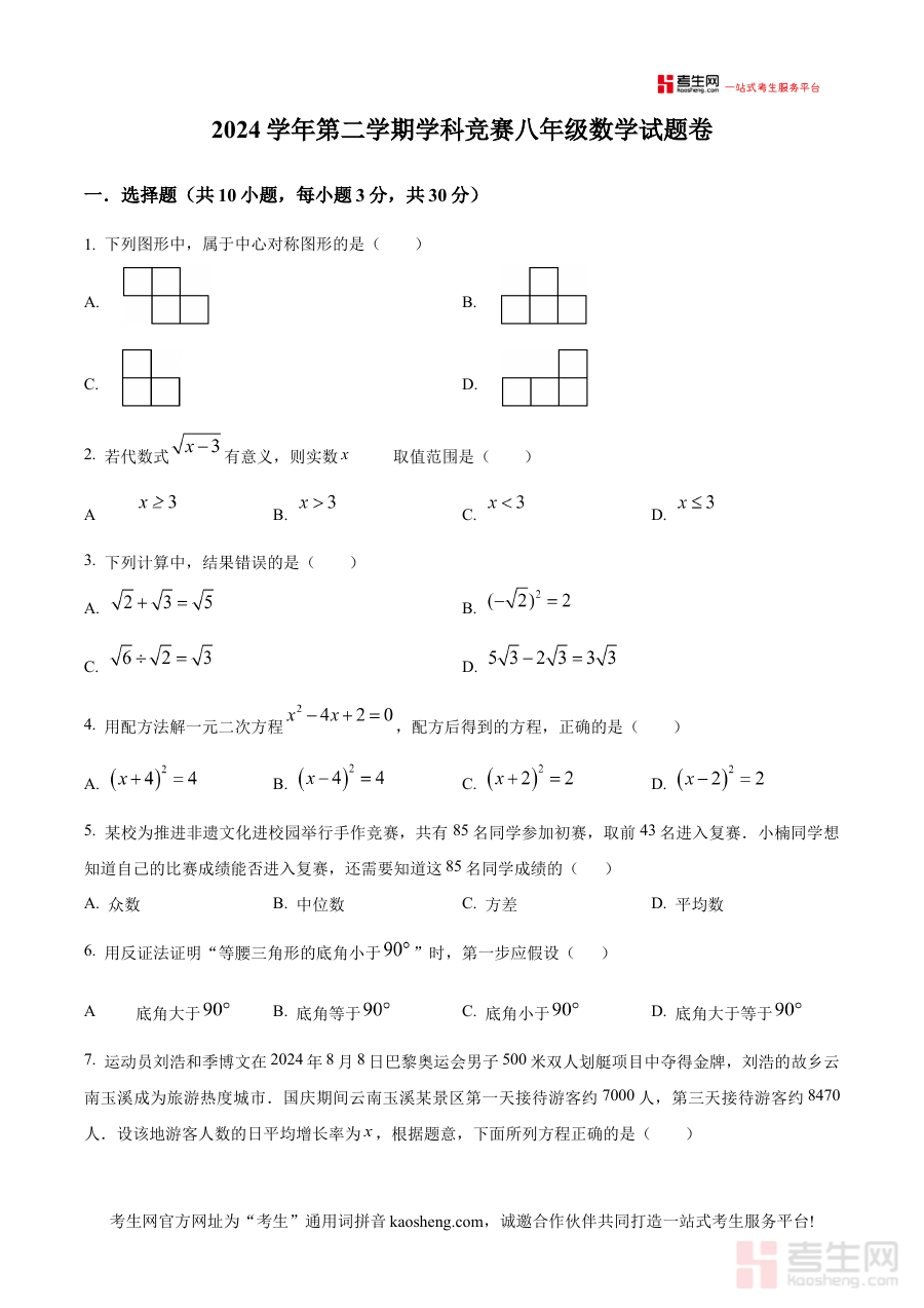《精品解析:浙江省宁波市余姚市城区初中2024—2025学年八年级下学期5月月考数学试题(原卷版)》是针对浙江省宁波市余姚市城区初中特定教学周期与考试节点的数学备考资料,明确对应2024至2025学年八年级下学期5月的月考场景,其原卷版形式高度贴合该区域初中八年级数学教学进度与本地考试命题方向,为师生提供了与实际考试场景一致的备考资源载体。
