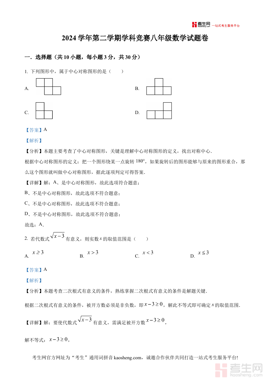 《精品解析:浙江省宁波市余姚市城区初中2024—2025学年八年级下学期5月月考数学试题(解析版)》是针对浙江省宁波市余姚市城区初中2024至2025学年八年级下学期5月月考数学科目的专业备考资料,聚焦该阶段数学学习成果的阶段性检测需求,为相关教学活动与学生复习提供精准支持。