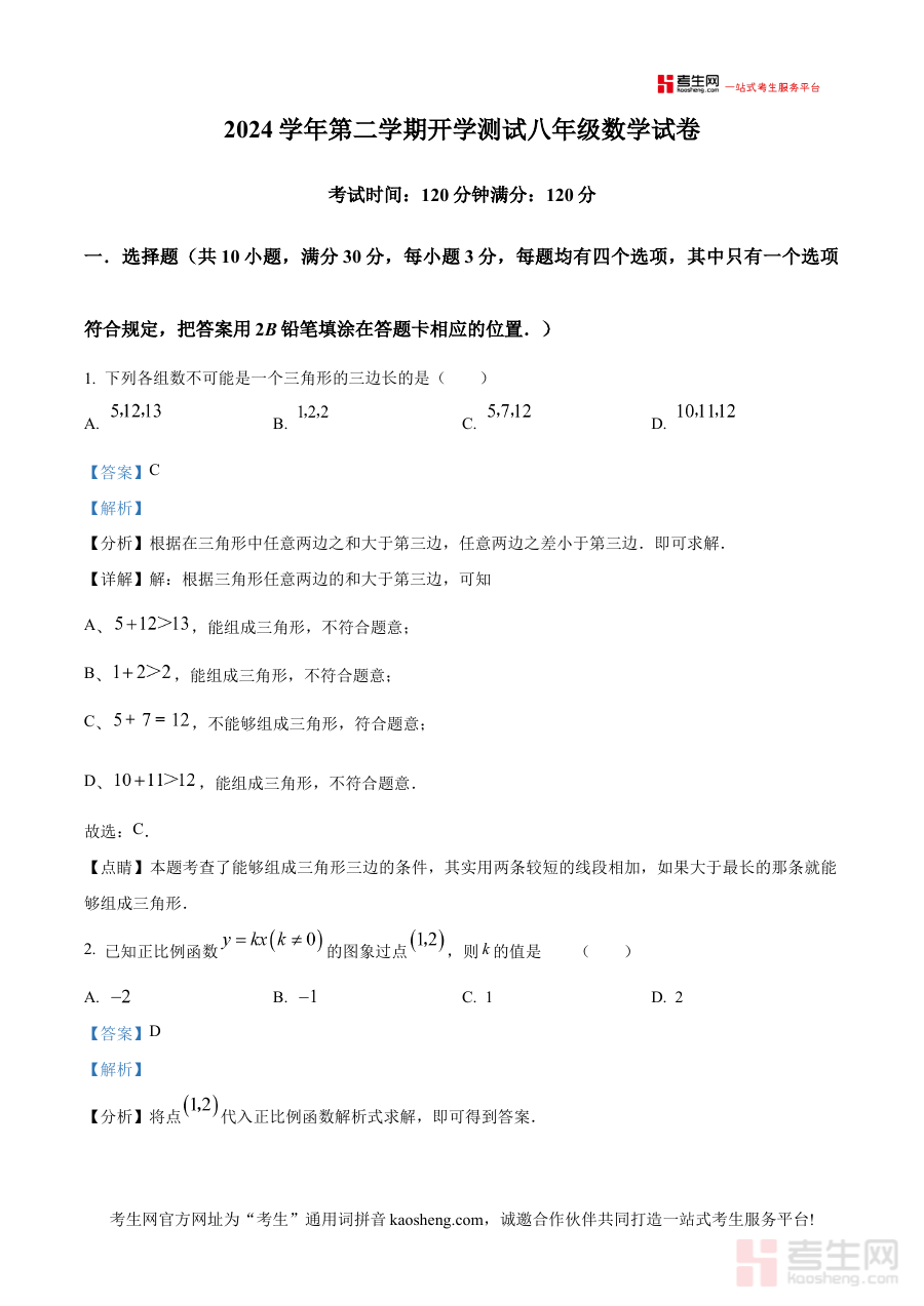 其适用人群主要包括浙江省宁波市余姚市参与此次开学测试的八年级学生以及负责该阶段数学教学的教师。对于学生而言,可通过解析版资料深入理解测试内容的内在逻辑与解题思路,明确自身学习短板并进行针对性补强,助力快速进入新学期学习状态;对于教师来说,能借助这份解析高效分析测试结果,精准掌握学生的学习现状,优化后续教学安排与个性化教学方案,共同推动八年级学生数学学科的阶段性提升与持续发展。