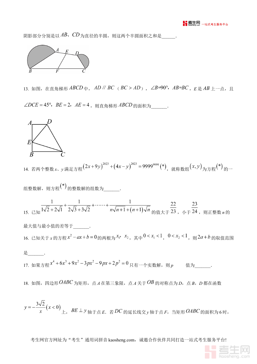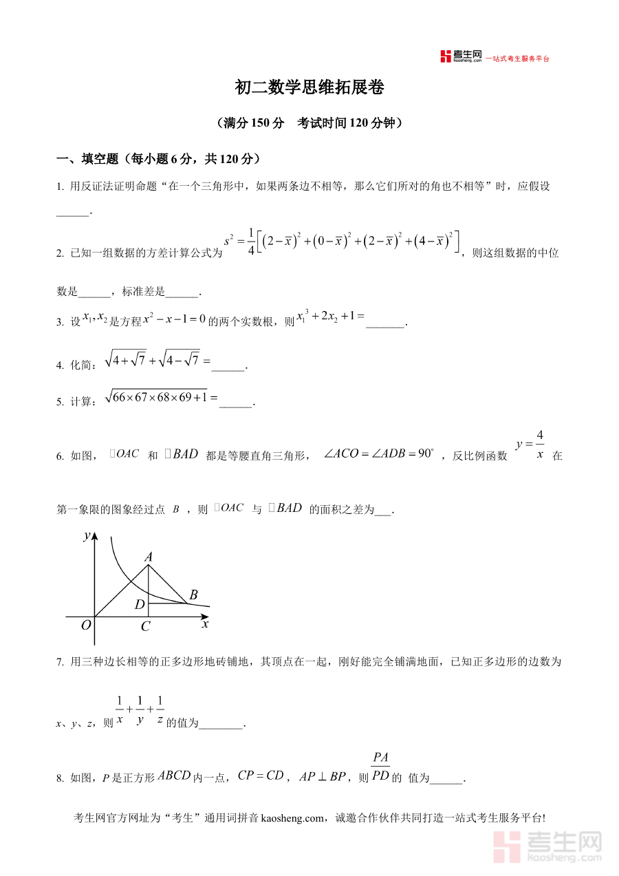《精品解析:浙江省宁波市钟公庙初级中学、雅戈尔中学等四校2022-2023学年八年级下学期7月联考数学竞赛试卷(原卷版)》是2022-2023学年浙江省宁波市钟公庙初级中学、雅戈尔中学等四所学校联合举办的八年级下学期7月数学竞赛的原卷版本备考资料。该资料依托本地四校联考竞赛的实际命题场景,为学生提供了贴合学段竞赛要求的练习载体。