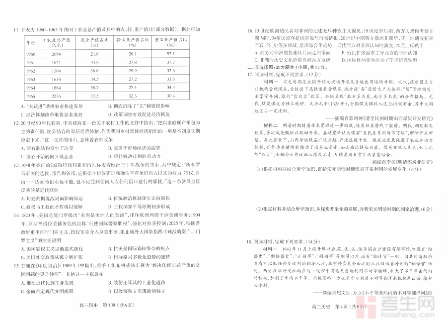 该试卷作为高三第一学期期末的历史学科检测工具,能够帮助教师准确诊断学生在本学期历史知识掌握的情况,包括对历史事件脉络梳理、历史概念理解以及历史分析能力运用等方面的表现,同时为学生后续历史备考规划提供数据支持,助力师生明确下一阶段历史学习的重点方向和改进策略。