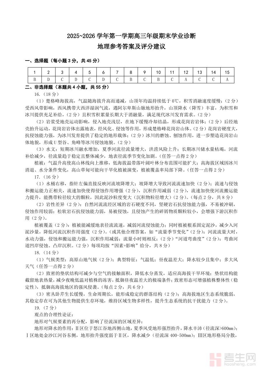 《太原25-26学年高三第一学期期末地理答案》是针对太原市25-26学年高三年级第一学期期末地理考试的配套答案资料。该资料与当地高三第一学期期末地理考试直接对应,是对本次期末地理考试试题的官方或权威解答载体,能够为相关使用者提供明确的作答参考依据,帮助使用者准确把握本次考试的答题标准与方向,是衔接高三上半学期学习与后续备考阶段的重要参考资料。
