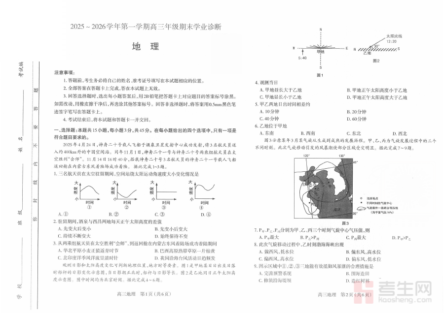 该试卷适用于太原市25-26学年的全体高三学生,尤其适合在第一学期期末阶段需要进行自我检测或系统复习的学生使用。对于教师而言,它可作为阶段教学效果评估的有效工具;对于学生来说,完成这份试卷不仅能直观了解自身地理学科的学习状况,还能为后续的高考备考规划提供清晰的方向指引,助力提升复习效率与备考质量。