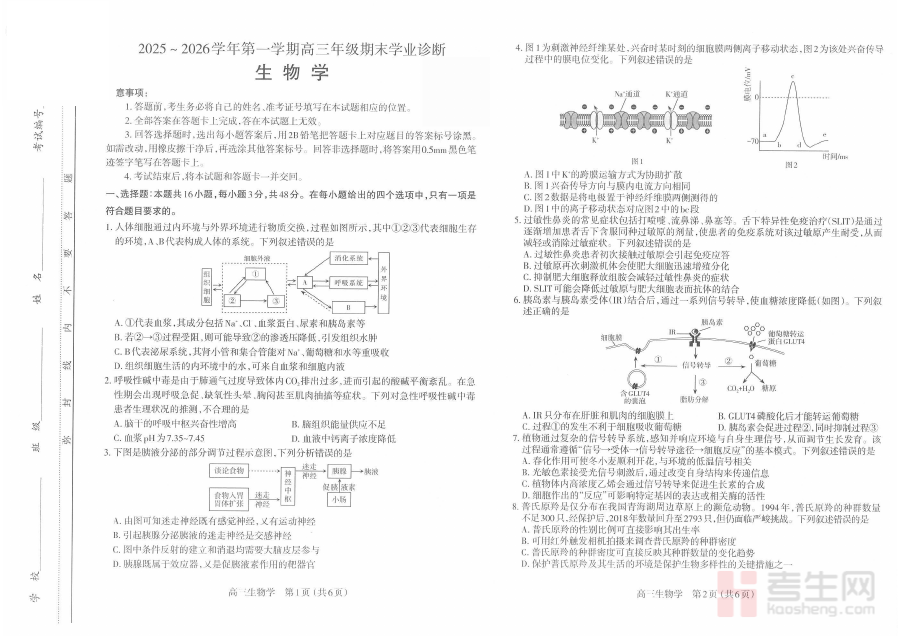 该试卷主要适用于太原市25-26学年高三年级的生物学科学习者,无论是日常复习中的自我检测,还是期末考前的冲刺模拟,使用该试卷均能有效检验阶段性学习成果,帮助考生明确复习重点、优化备考策略,为后续高考生物学科的系统复习积累实践经验与方向参考。