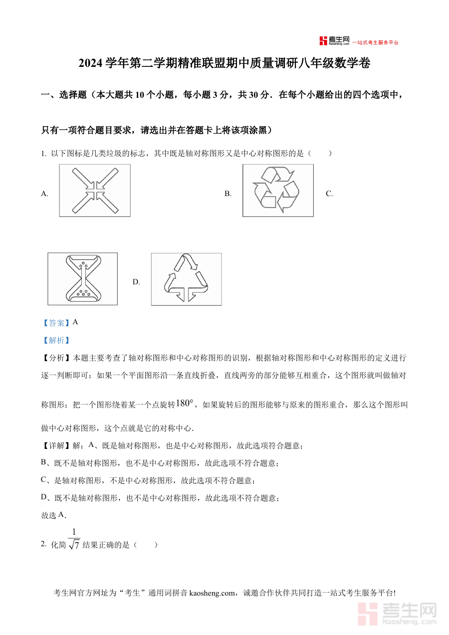 本资料适用于浙江省宁波市北仑区精准联盟内的八年级学生、数学教师及相关教育工作者;对学生而言,能通过解析内容精准定位知识薄弱点优化学习路径,对教师而言,可借助资料把握命题趋势与学生共性问题,增强教学精准性与有效性。