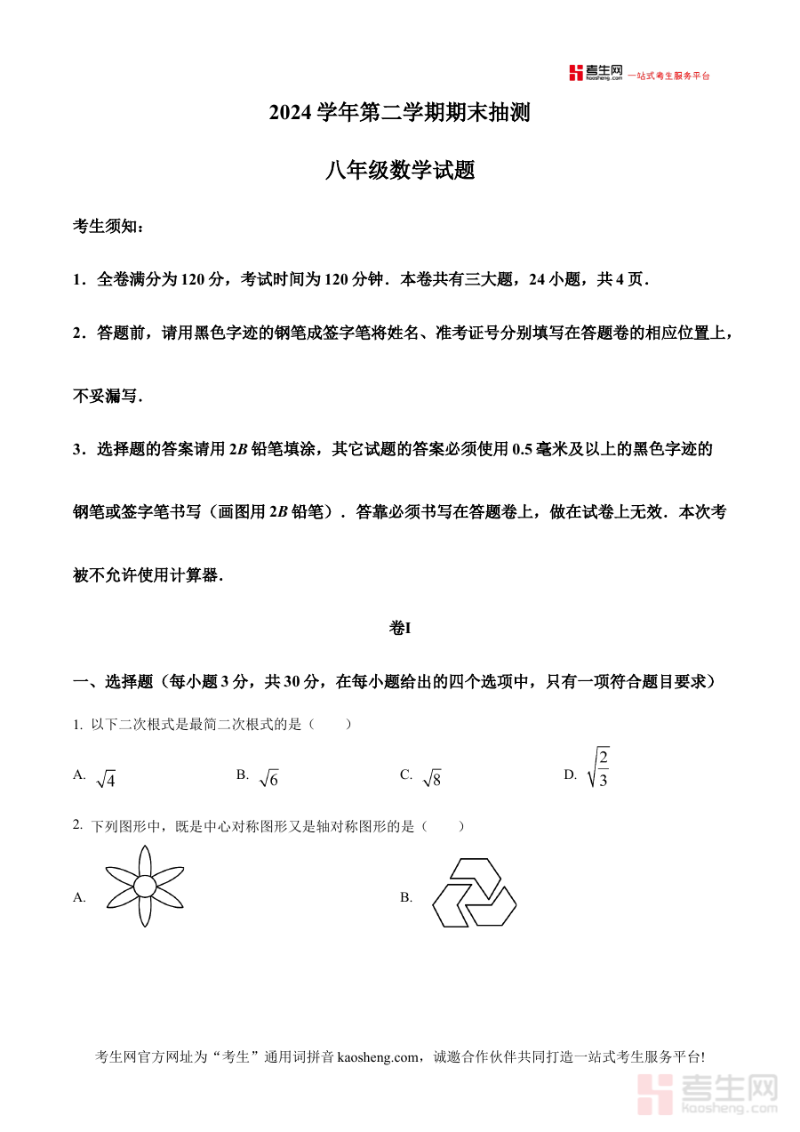 《精品解析:浙江省宁波市奉化区2024-2025学年八年级下学期期末数学试题(原卷版)》是针对浙江省宁波市奉化区2024-2025学年八年级下学期期末数学考试的专业备考资料,依托当地期末考的命题方向与区域教学实际编制,为使用者提供贴合该阶段学习要求的考试内容呈现形式。