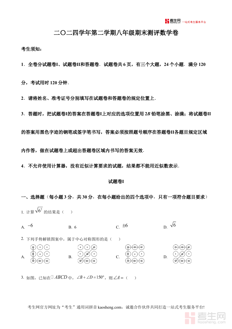 《精品解析:浙江省宁波市北仑区2024—2025学年下学期八年级期末数学试卷(原卷版)》是针对浙江省宁波市北仑区2024至2025学年下学期八年级期末数学考试编制的备考资料,精准对应该地区该学年八年级下学期数学学科的期末检测需求,为使用者提供贴合本地教学进度与考试要求的参考内容。
