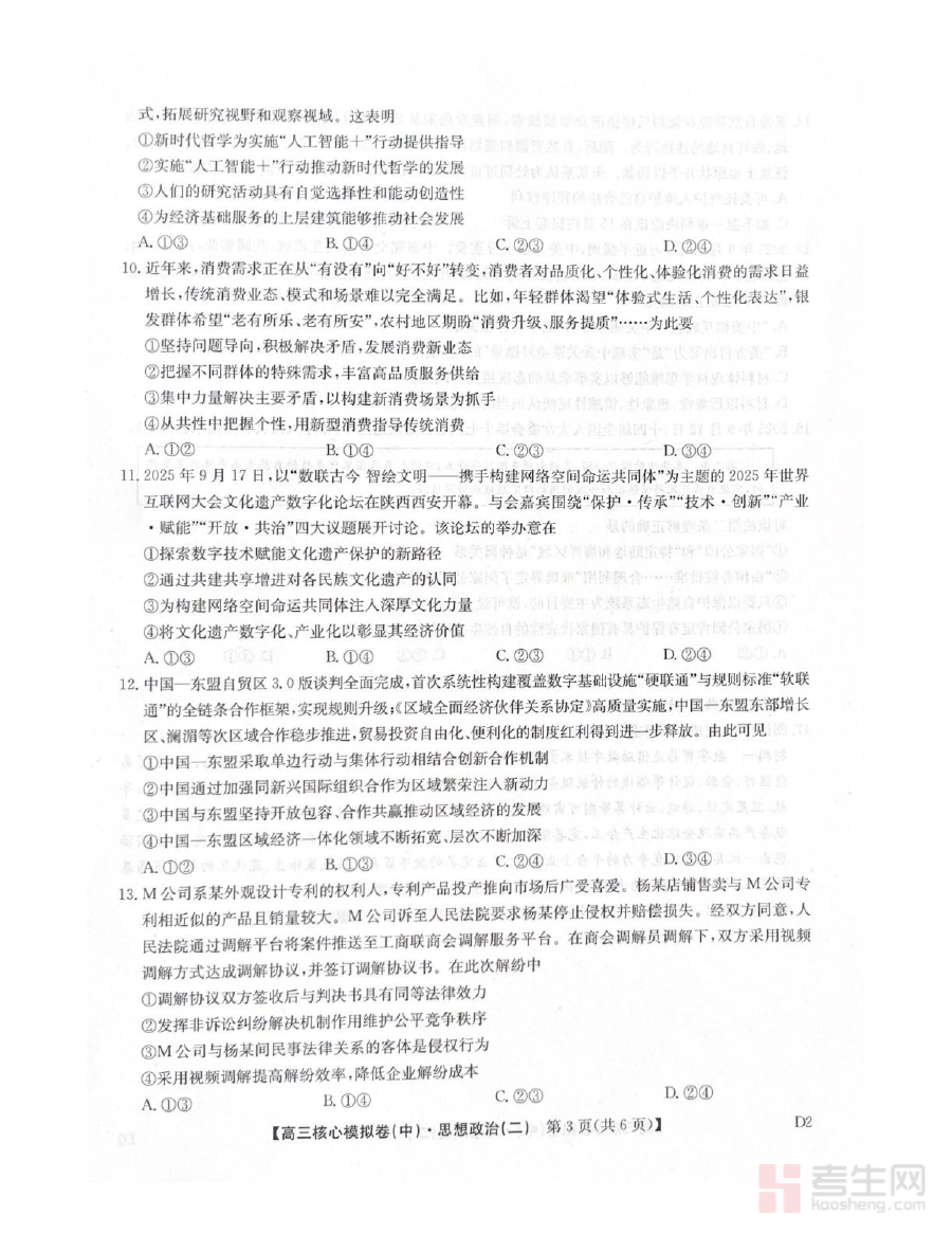 本试题主要适用于2025-2026学年上学期就读高三年级的学生及承担该年级政治教学任务的教师。对于学生,通过试题检测可巩固已学知识、提升综合运用能力;对于教师,可借助试题结果完善教学策略、增强备考指导的针对性。其价值在于能够衔接高三上学期学习成果与高考备考规划,助力师生在关键阶段把握学习重点、提高复习效率,为后续学业发展奠定基础。