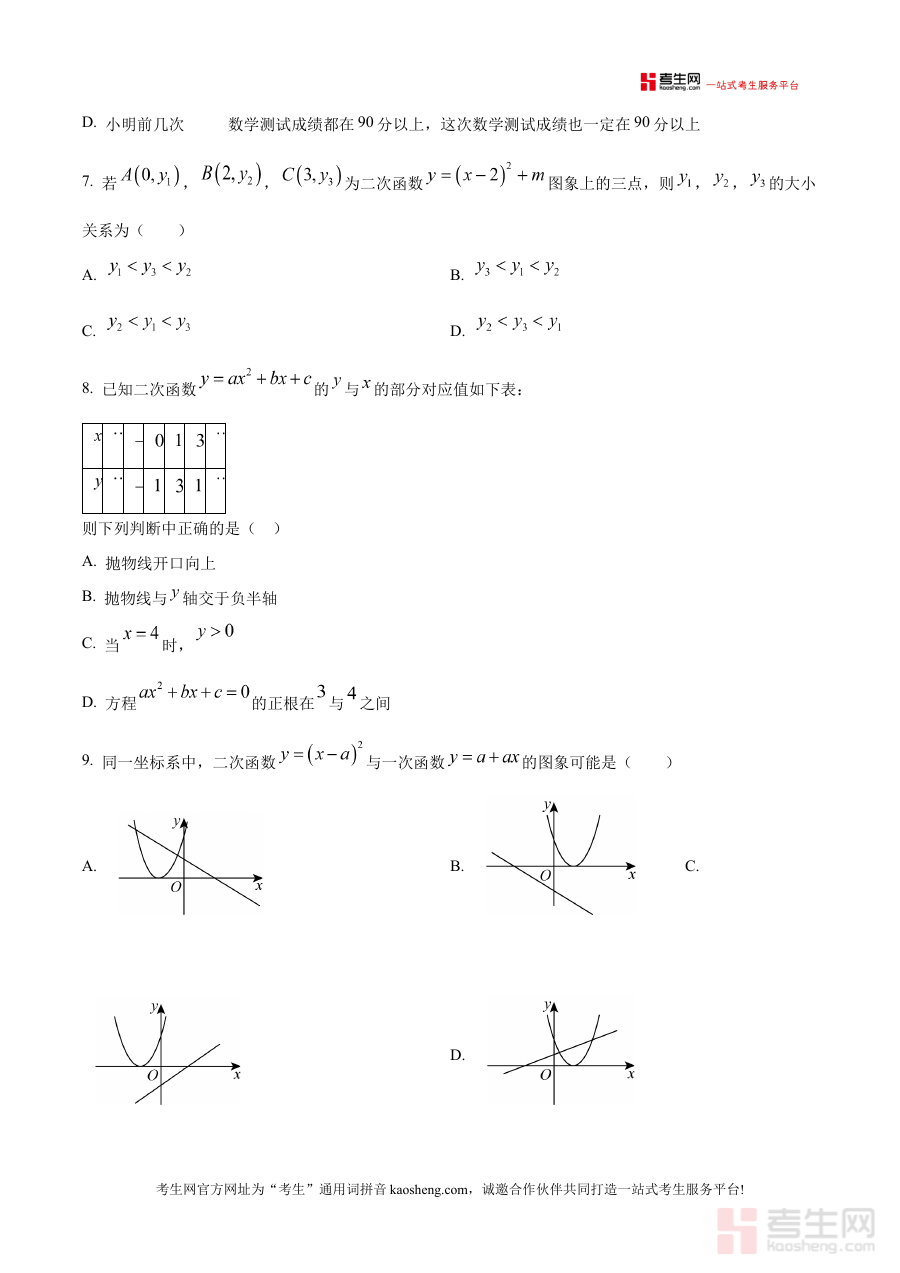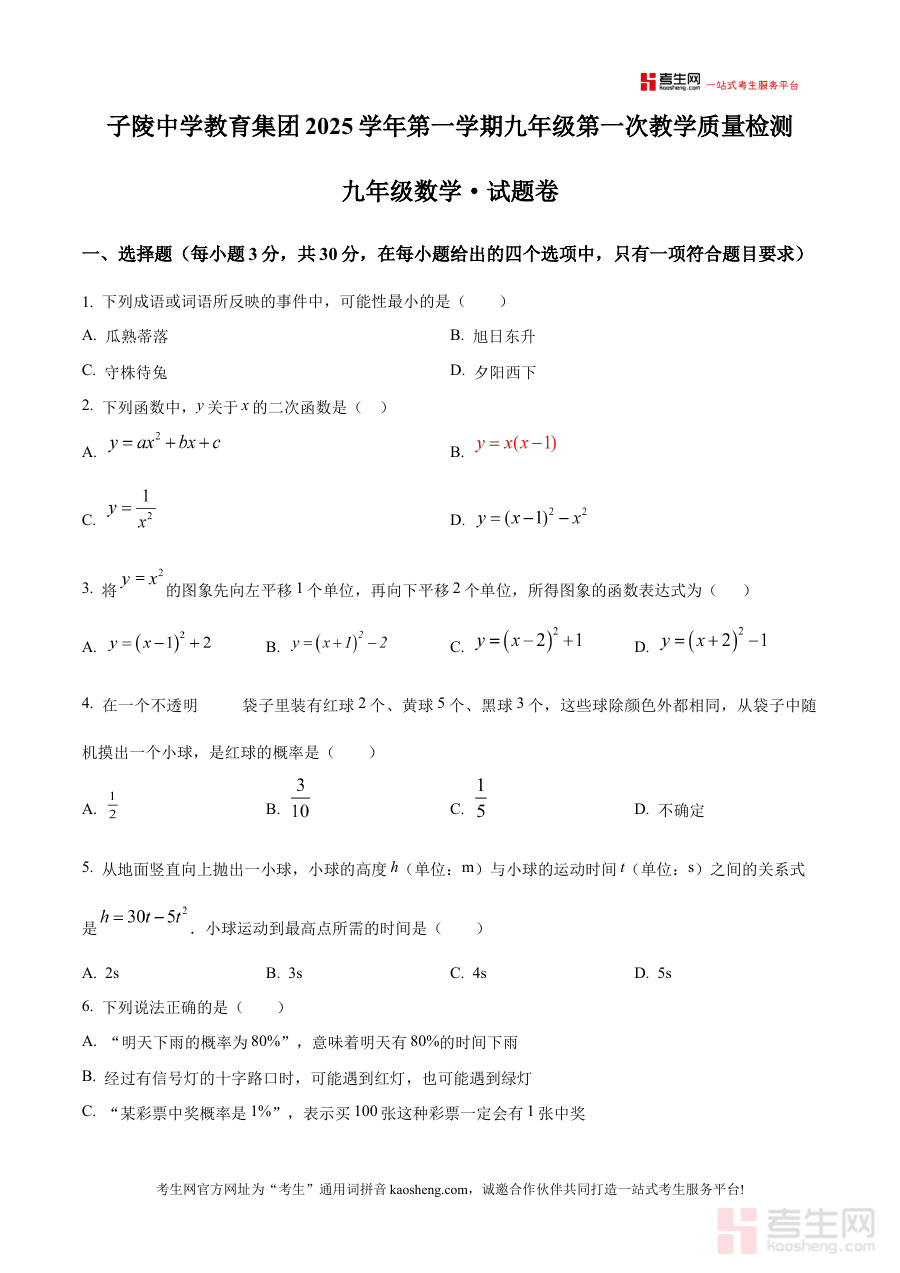 《精品解析:浙江省宁波市余姚市子陵中学教育集团2025-2026学年九年级上学期数学第一次教学质量检测(原卷版)》是针对浙江省宁波市余姚市子陵中学教育集团2025-2026学年九年级上学期数学学科的首次教学质量检测原卷资料,属于该阶段数学学科的阶段性备考资源,能够为相关教学活动和学生学习提供对应阶段的检测参考。