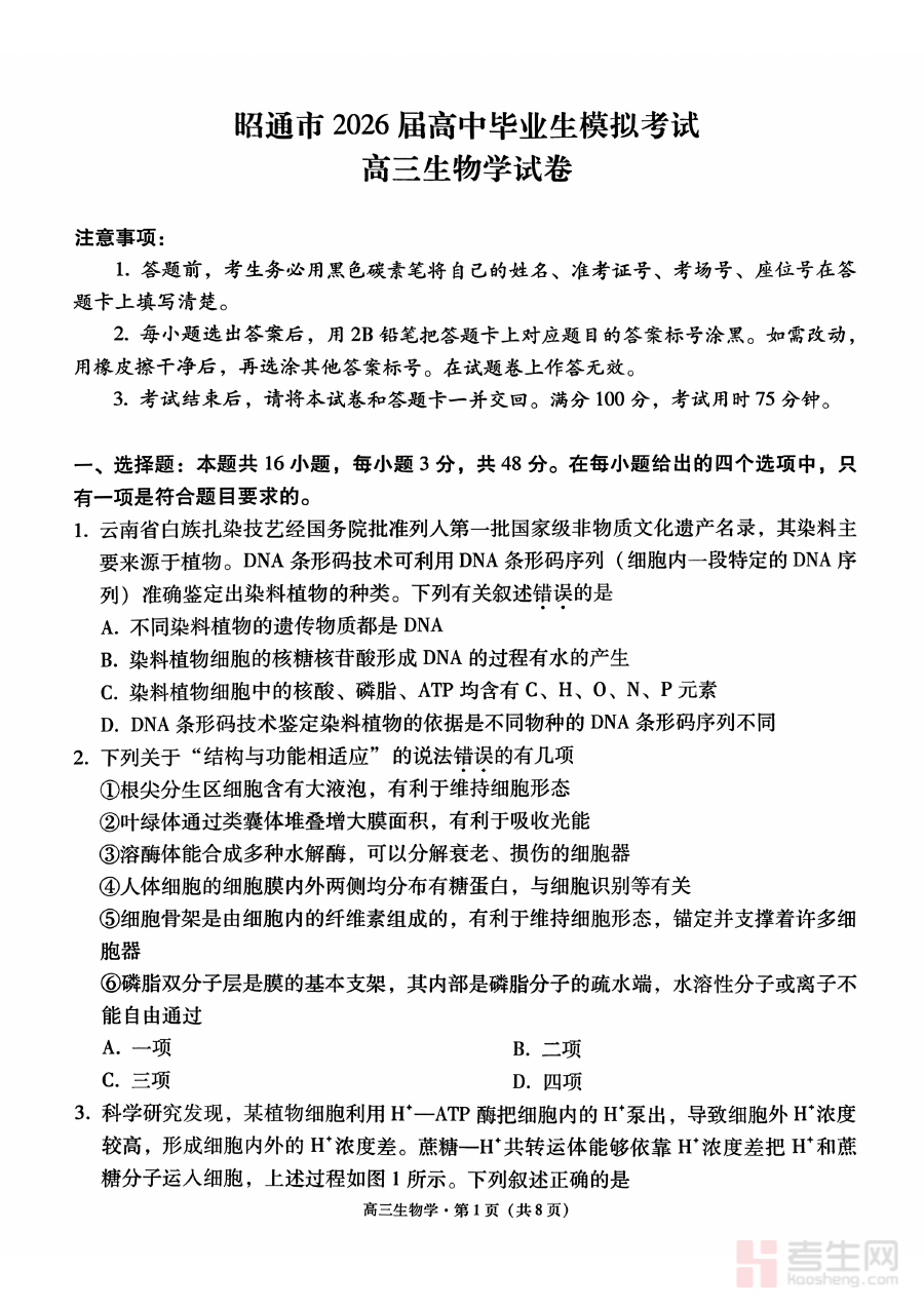 该资料适用于云南省昭通市2026届高中三年级学生,尤其是正在进行生物学科系统复习的毕业生群体。对于学生而言,参与该模拟考试能够提前适应考试节奏与压力,提升应试能力;对于教师而言,它是开展教学评估与复习指导的重要工具。同时,该资料的区域针对性特点使其在帮助学生适应本地考试命题风格方面具有独特价值,助力毕业生在最终的高中生物考试中取得理想成绩。