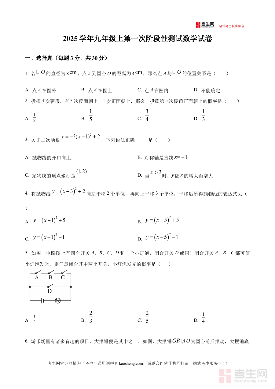 《精品解析:浙江省宁波市宁海县西片学校2025-2026学年九年级上学期第一次考试数学试题(原卷版)》是针对浙江省宁波市宁海县西片学校特定学年与学段的数学考试资料,精准对应2025-2026学年九年级上学期首次数学阶段性考试的考查背景与要求,为相关师生提供了贴合本地教学实际的考试载体,是该区域学校九年级数学阶段性学习的重要参考资料之一。