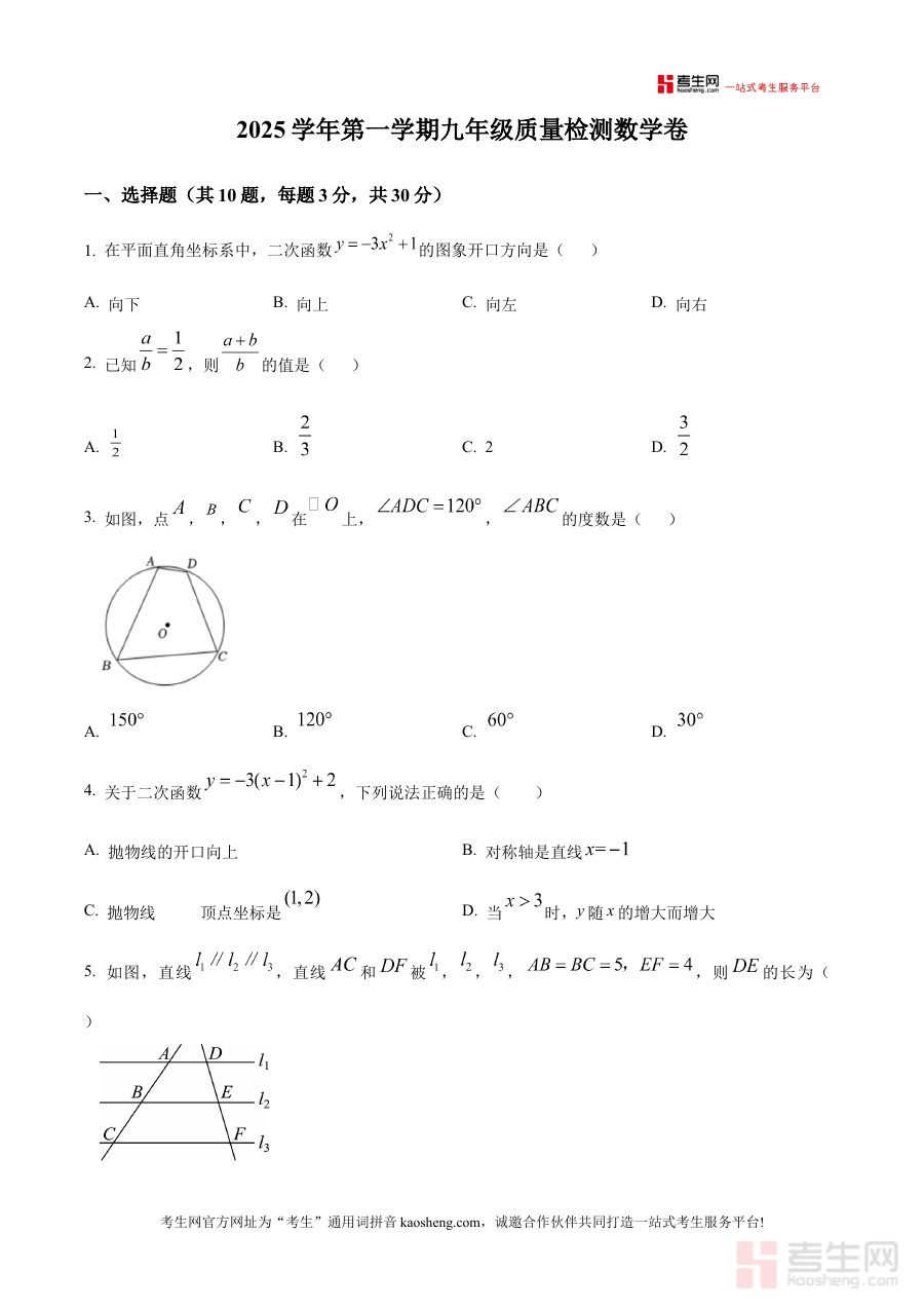 《精品解析:浙江省宁波市慈溪育才中学2025-2026学年上学期9月月考九年级数学试卷(原卷版)》是针对浙江省宁波市慈溪育才中学特定学年学期的九年级数学阶段性考试资料,精准对应该校2025-2026学年上学期9月月考的数学科目考试安排,为相关教学活动提供贴合实际进度的参考依据。