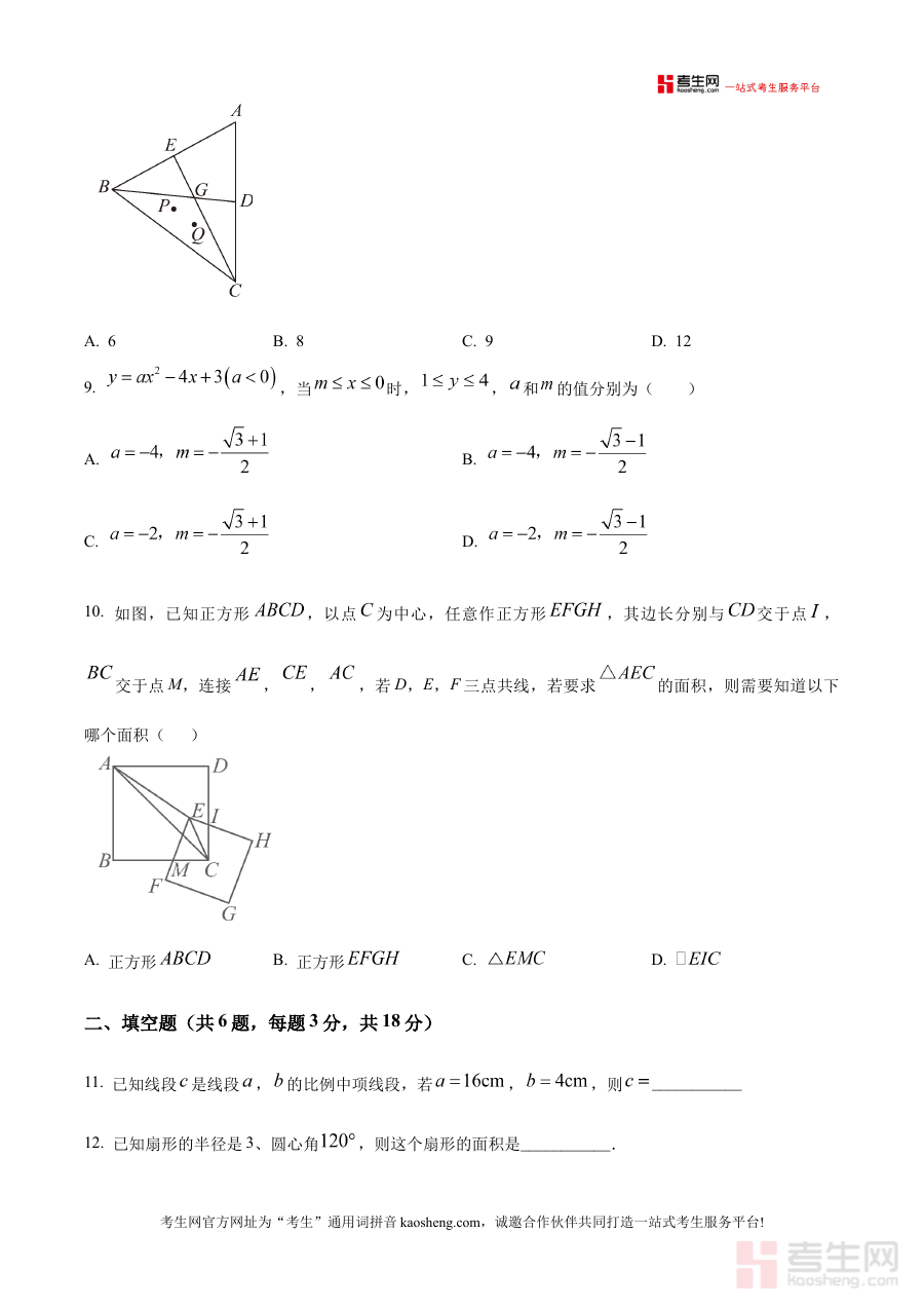 该资料可用于九年级学生开展阶段学习效果的自我评估,帮助教师掌握学生数学知识的掌握情况,为后续教学策略调整与备考计划制定提供支撑,同时助力学生提前适应月考的考试形式与节奏。