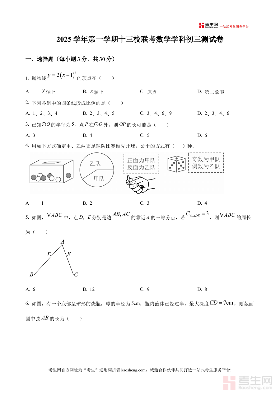 《精品解析:浙江省宁波市鄞州区十三校 2025-2026学年九年级上学期10月联考数学试题(原卷版)》是针对浙江省宁波市鄞州区十三校在2025-2026学年九年级上学期10月联考数学科目的备考资料,聚焦该阶段校际联考的考试需求,为相关群体提供贴合本地联考实际的学习参考依据。