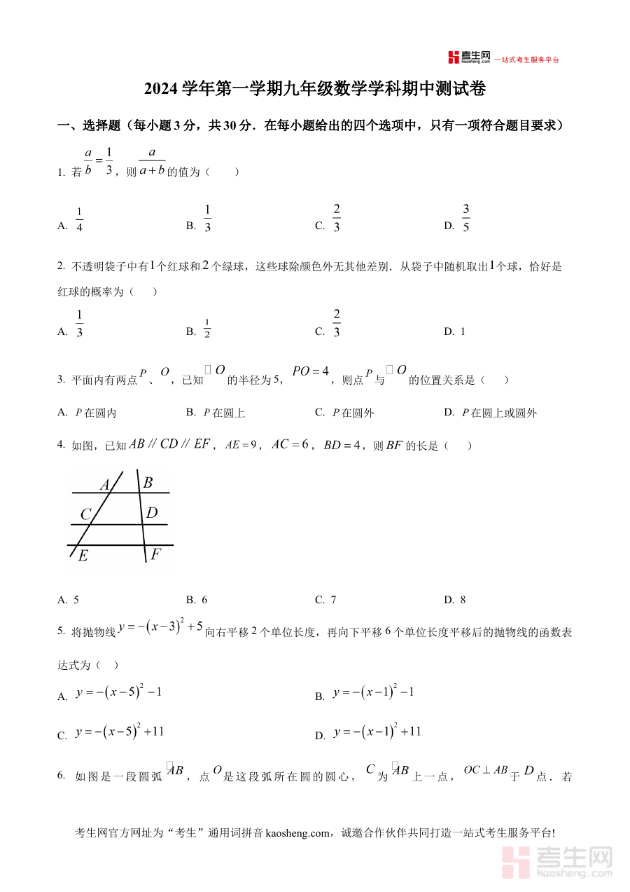 《精品解析:浙江省宁波市鄞州区十二校联考2024-2025学年九年级上学期11月月考数学试题(原卷版)》是针对2024-2025学年浙江省宁波市鄞州区十二校联合举办的九年级上学期11月数学月考的配套备考资料,其核心定位是还原该区域阶段性联合考试的原卷内容,为相关教学活动及学生备考提供精准的参考依据。