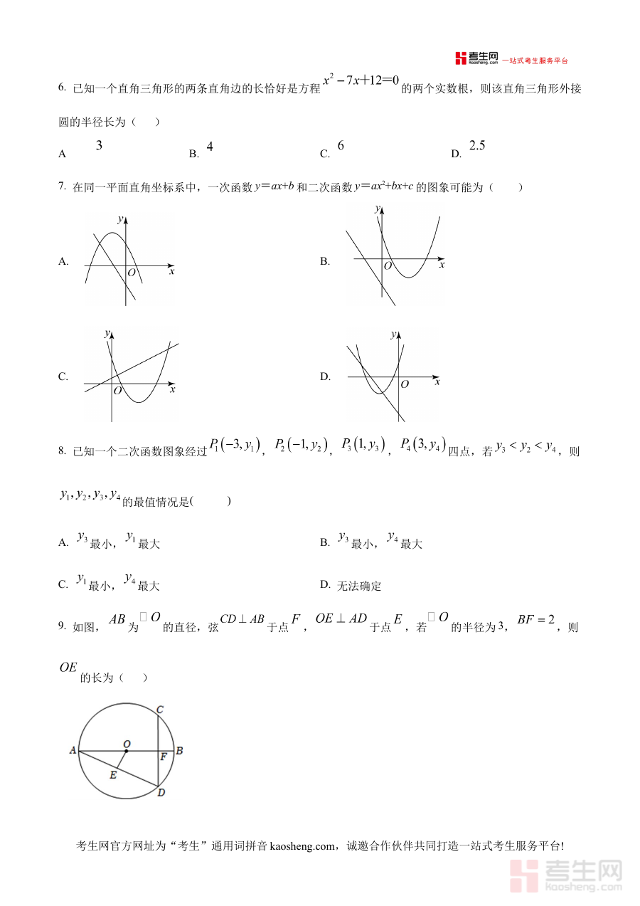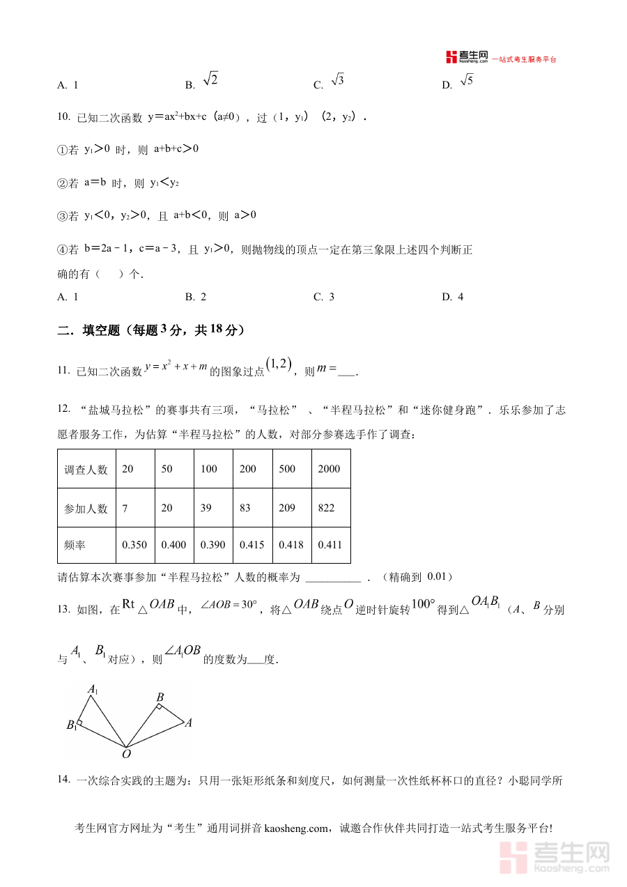 本资料适用于曙光中学九年级学生、数学教师及相关教学研究者。对于学生而言,通过使用该原卷版可提前适应考试节奏,明确自身知识薄弱环节并进行针对性补强;对于教师而言,可借助该资料开展阶段性教学效果评估,优化教学策略与辅导方案,共同推动九年级数学学习的高效开展与备考质量的提升。