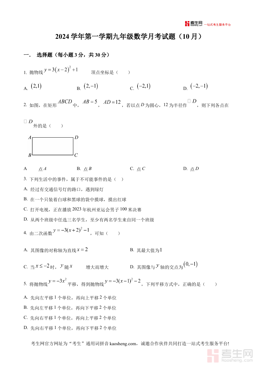 《精品解析:浙江省宁波市鄞州区曙光中学2024-2025学年九年级上学期10月月考数学试题 (原卷版)》是针对浙江省宁波市鄞州区曙光中学特定学年与学期的数学月考资源,对应2024-2025学年九年级上学期10月的校级考试场景,为相关师生提供了贴合本校教学进度的考试原题资料,有助于师生精准把握该阶段数学学习的考查方向与本校命题特点。