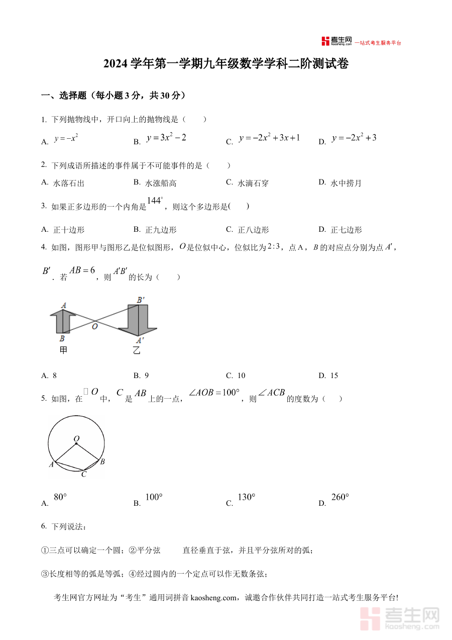 《精品解析:浙江省宁波市鄞州实验中学2024-2025学年九年级上学期二阶测试数学试题(原卷版)》是针对浙江省宁波市鄞州实验中学2024-2025学年九年级上学期二阶测试设计的数学学科备考资料,精准对应该学校该学年九年级上学期的阶段性测试需求,为相关人员提供与实际测试场景一致的原卷内容参考。