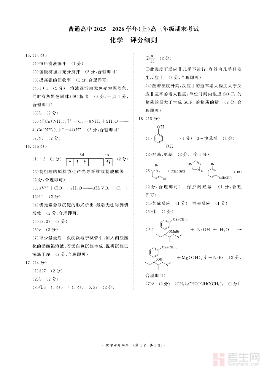 《河南高三2月青桐鸣联考化学卷评分细则》是面向河南省高三年级学生2月青桐鸣联考化学科目的官方评分规范文件,属于该阶段区域性联考配套的核心备考辅助资料。该文件紧密结合河南地区高三化学教学进度与联考命题方向,明确了此次联考化学试卷各题型的评分标准与细则要求,为参与联考的师生提供了权威且具体的评分依据,是联考后分析学情、优化备考的重要参考资料。