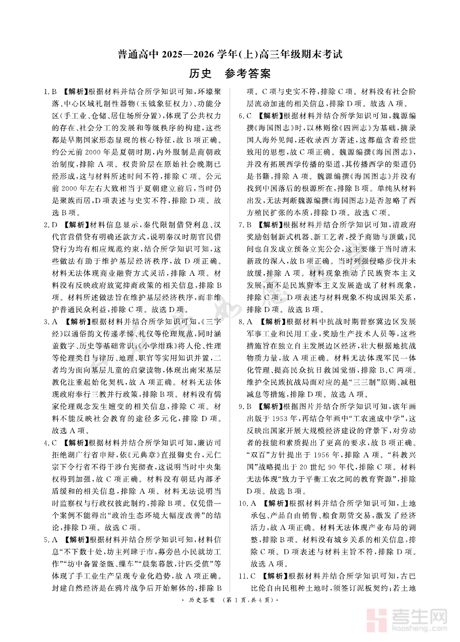 《河南高三2月青桐鸣联考历史卷答案》是针对河南省高三学生在2月份参与的青桐鸣联考历史科目的配套参考答案资料。青桐鸣联考作为河南省内具有一定影响力的高三阶段性测试,旨在通过统一命题与标准化检测,帮助师生把握高三历史学科的学习进度与知识掌握情况,而这份答案则是该考试体系中支撑结果评估的核心工具之一,与同期的历史试卷形成完整配套。
