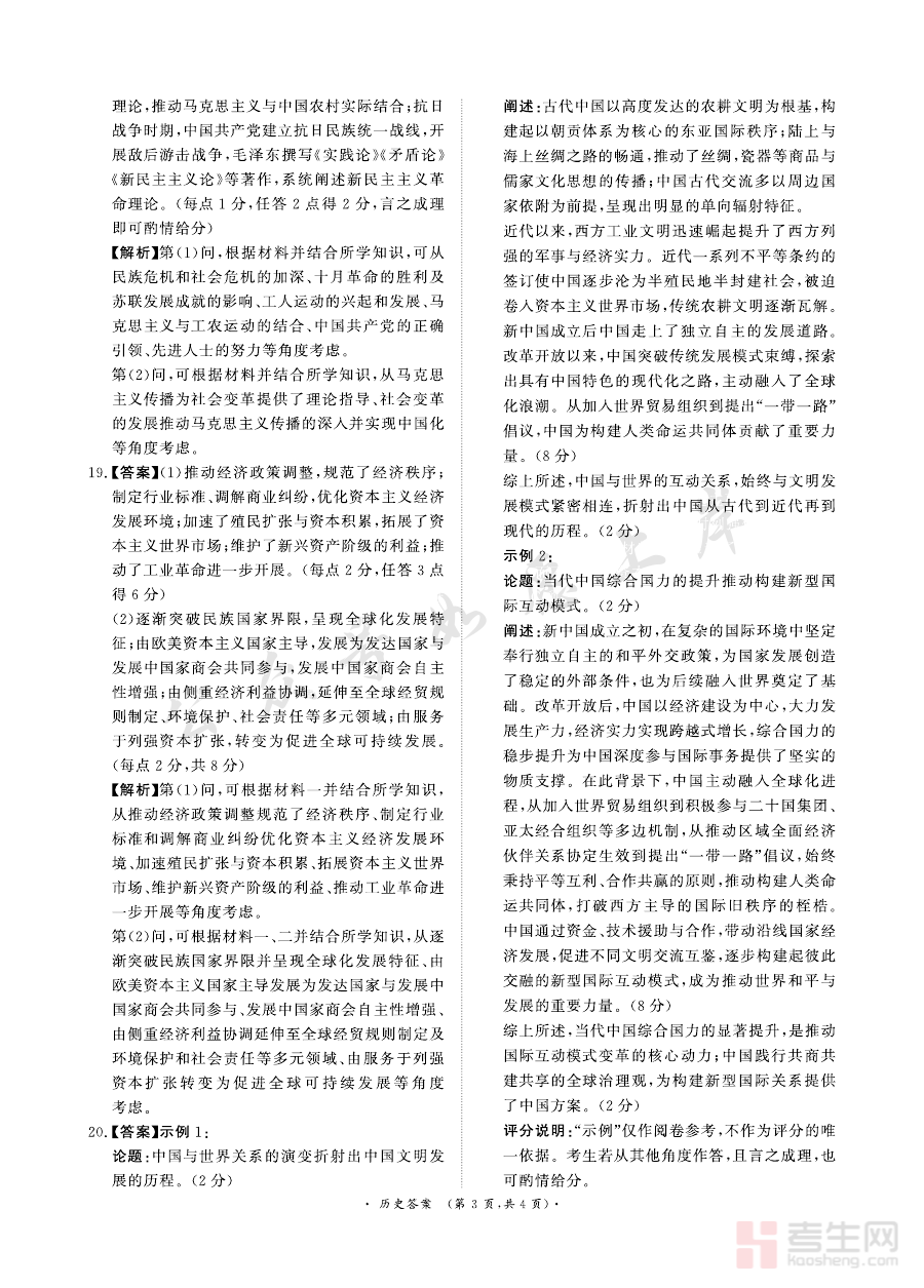 这份答案资料的主要用途集中在学情诊断与备考规划两个维度。对于学生而言,对照答案可快速明确自身在历史答题中的得分点与失分原因,清晰认知知识盲区与答题规范的不足;对于教师来说,借助答案能高效完成试卷批改工作,精准分析班级整体在历史学科各模块的掌握程度,为后续教学内容调整和针对性辅导提供数据支撑,助力优化备考策略。