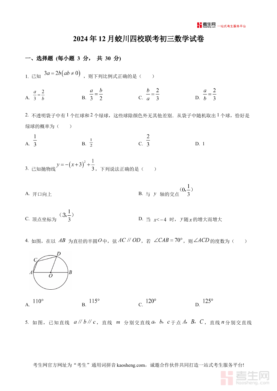 《精品解析:浙江省宁波市镇海蛟川书院等四校2024--2025学年九年级上学期 12月联考数学试卷(原卷版)》是针对浙江省宁波市镇海蛟川书院及其他三所联合学校在2024至2025学年九年级上学期12月联考的数学学科原卷资料,属于阶段性联考的备考参考材料,能够反映该阶段数学学科的考查方向与联考命题特点。