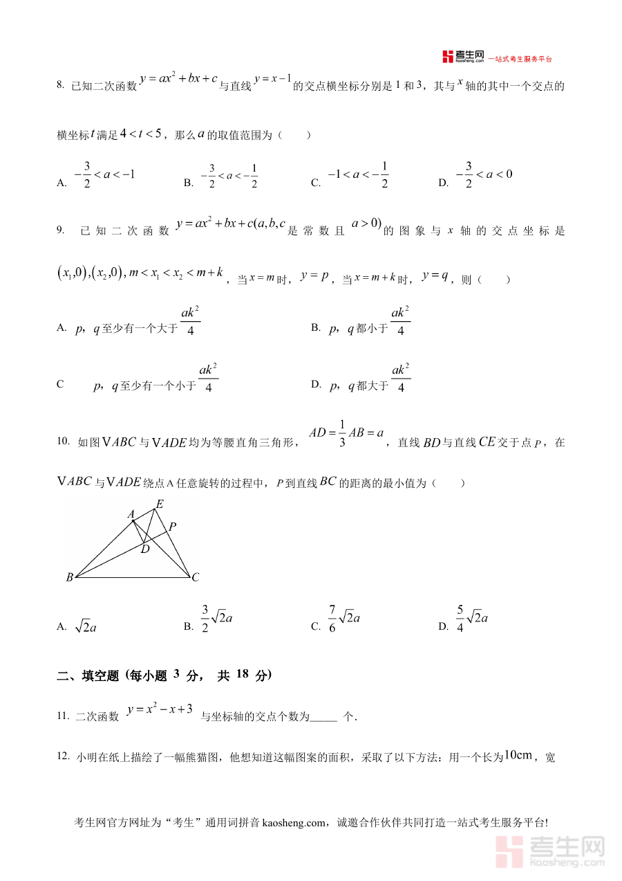 该资料可用于九年级学生进行阶段学习效果的自我诊断与评估,帮助教师掌握学生对数学知识的掌握程度,为后续教学计划调整与备考策略制定提供数据支持,同时也能让学生提前适应联考的考试形式与时间安排。