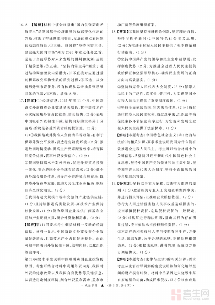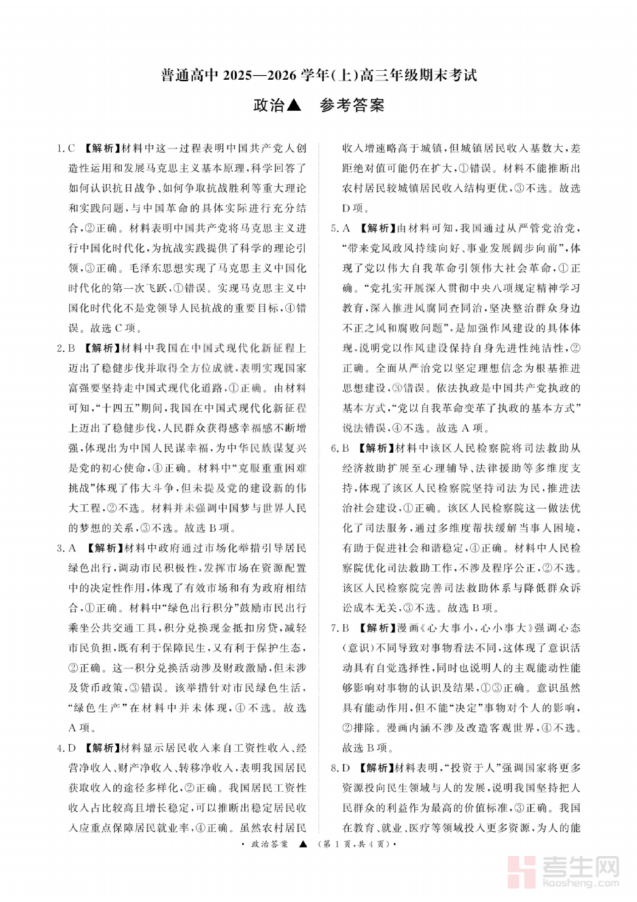《政治答案-青桐鸣高三联考202602》是针对2026年2月青桐鸣区域性高三联考政治科目的配套答案资料。该资料依托青桐鸣联考的标准化考试体系构建,与同期高三政治考试的考查范围、能力要求高度匹配,为考生和教学工作者提供了精准的参考答案依据,是高三政治备考阶段与联考真题配套使用的核心辅助材料之一。