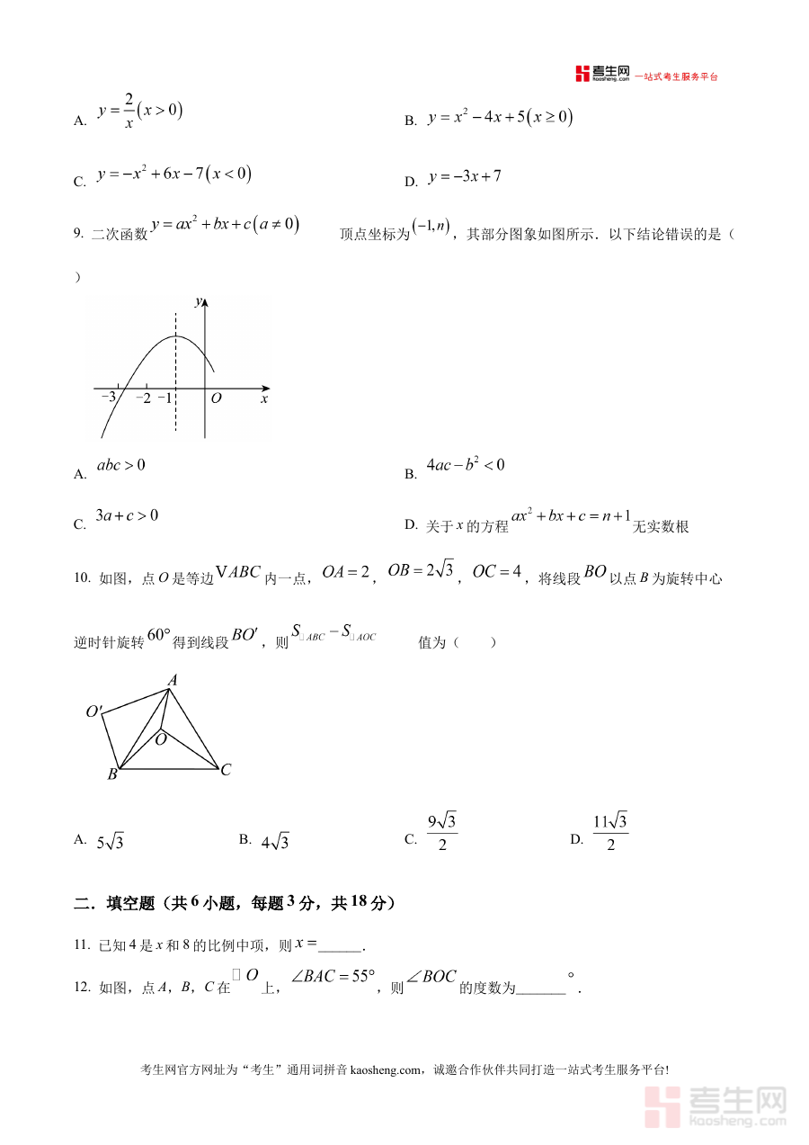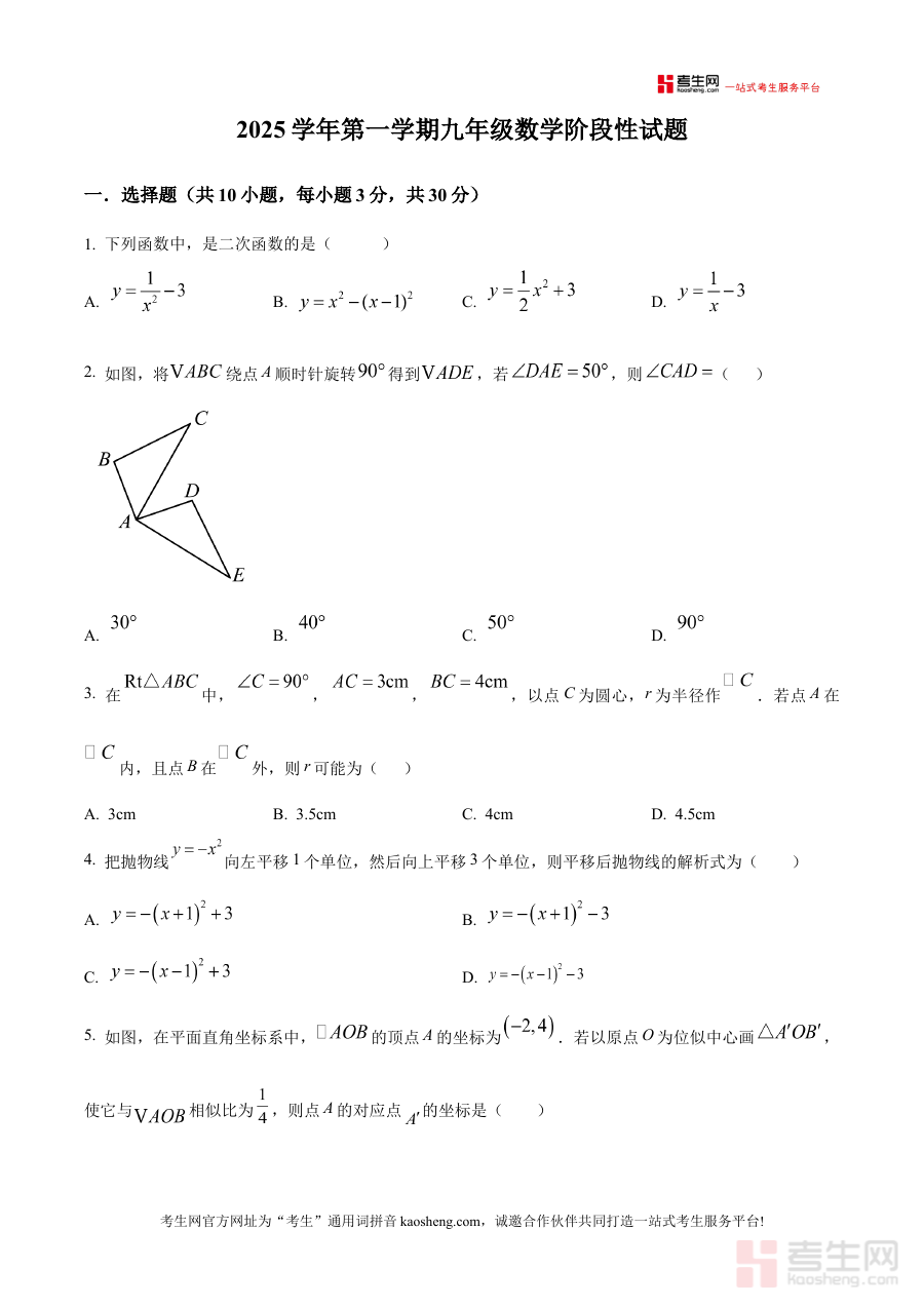 本资料主要适用于浙江省宁波市曙光中学2025-2026学年的九年级学生及该年级数学教师群体,其原始试卷形式能真实反映该校期中数学考试的考查特点,对学生的阶段复习和教师的教学评估均具有重要参考价值。