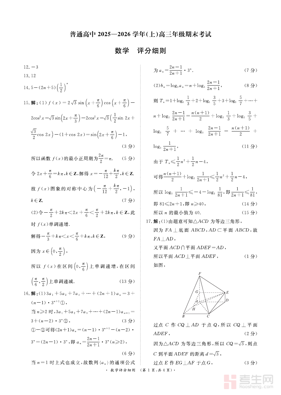 《河南高三2月青桐鸣联考数学卷评分细则》是针对河南地区高三学生2月青桐鸣联考数学科目的配套评分规范文件,属于该阶段性考试的重要备考辅助资料。它基于联考数学卷的命题方向与考查要求制定,为考试评分工作提供明确依据,同时也能帮助相关人员直观了解该次考试的评价标准与导向。
