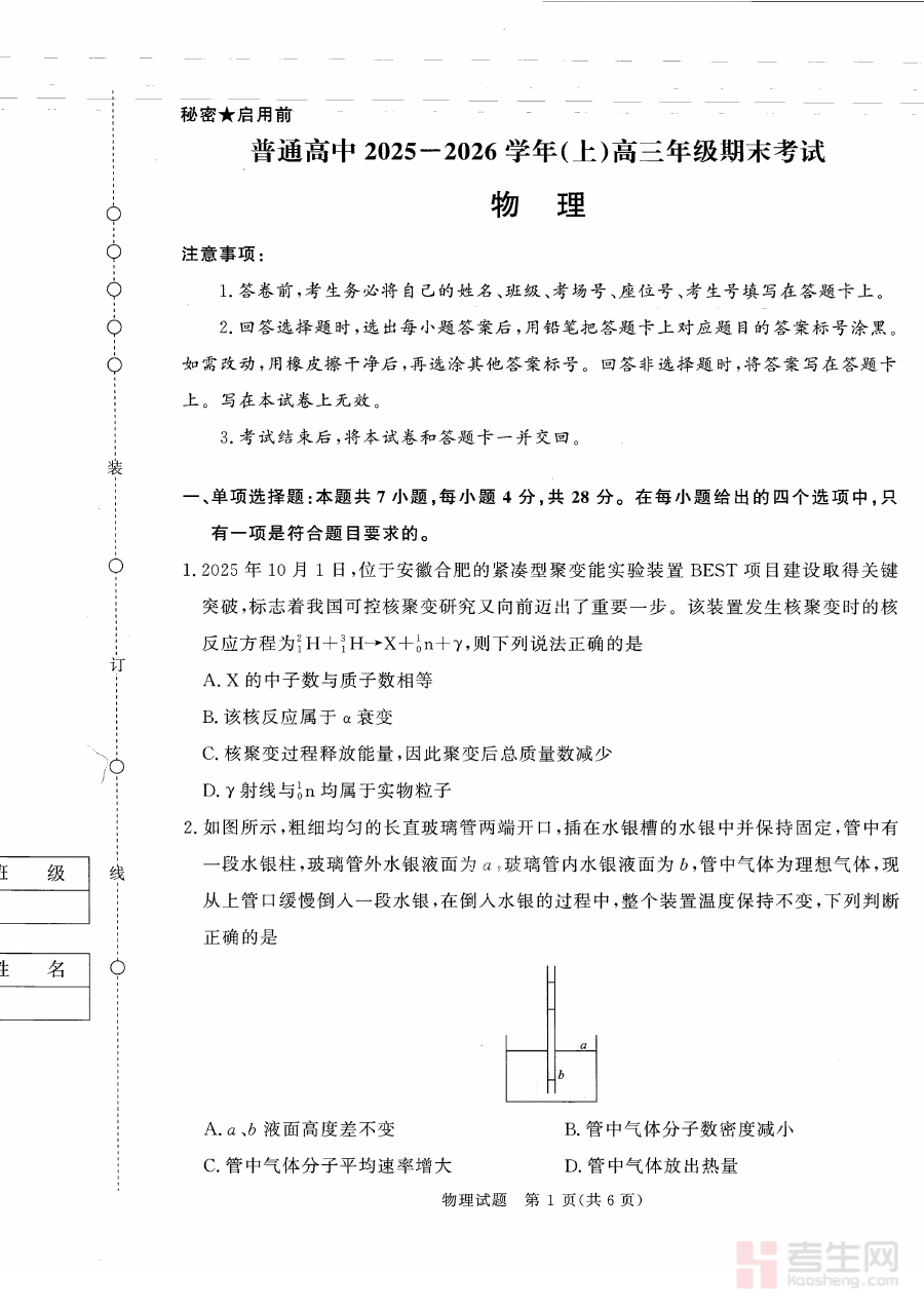 该资料可用于高三学生开展物理学科的阶段性学情诊断工作,帮助教师与学生精准把握当前学习进度及知识掌握程度,为后续备考规划的优化调整提供可靠依据,同时也能让学生在练习过程中熟悉联考的测试流程与考查方向,提升应对大型考试的适应能力。