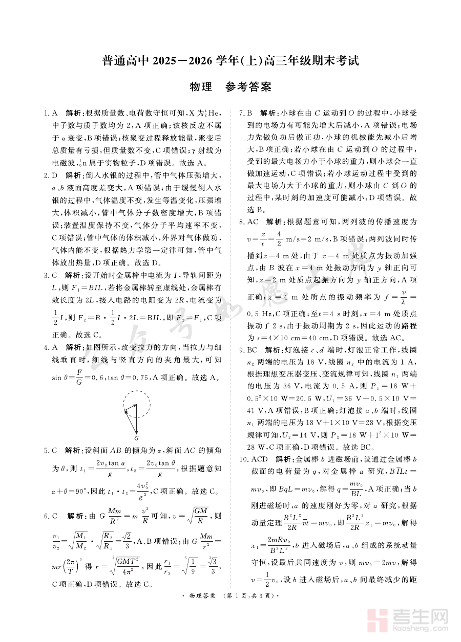 其适用人群主要包括河南省高三年级的学生、物理学科教师以及参与青桐鸣联考组织的相关教育工作者。对于学生而言,这份答案有助于及时调整备考策略,提升复习针对性;对于教师,它能辅助优化教学内容与节奏,强化薄弱知识点的训练;在高三复习的关键阶段,这份答案资料能够有效提升备考效率与质量,具有重要的阶段性参考价值。