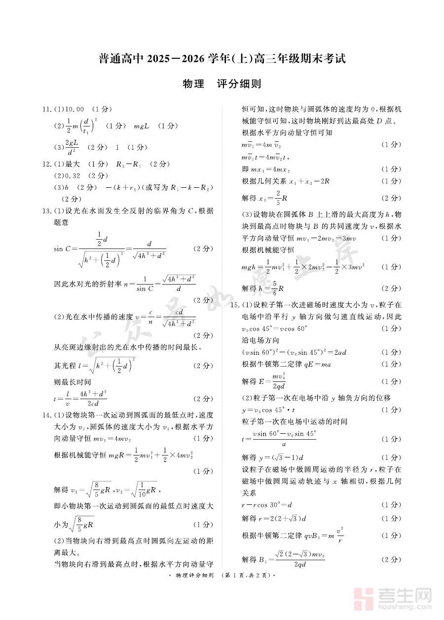该评分细则主要用于联考后的学情诊断工作,帮助教师快速精准地评估学生在物理学科各模块的知识掌握程度与能力表现,为后续的备考规划提供数据支撑与方向指引;同时它也能让学生明确自身答题中的得分要点与失分原因,清晰认知学习短板所在,从而开展更具针对性的复习与提升;此外对于学校或教研机构而言,该细则也是开展阶段检测效果分析、优化教学策略与备考方案的重要参考依据,助力提升整体备考的精准性。