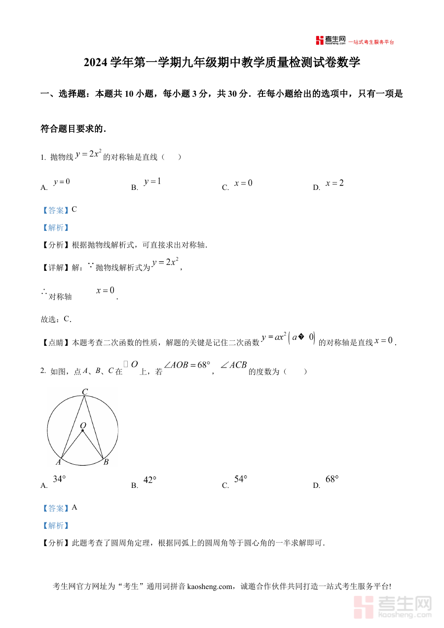 《精品解析:浙江省宁波市海曙区部分学校2024—2025学年上学期九年级数学期中试卷(解析版)》是针对浙江省宁波市海曙区部分学校2024至2025学年上学期九年级数学期中考试编制的配套解析资料,聚焦该阶段数学学科期中检测的核心需求,为相关教学与学习活动提供专业支撑。