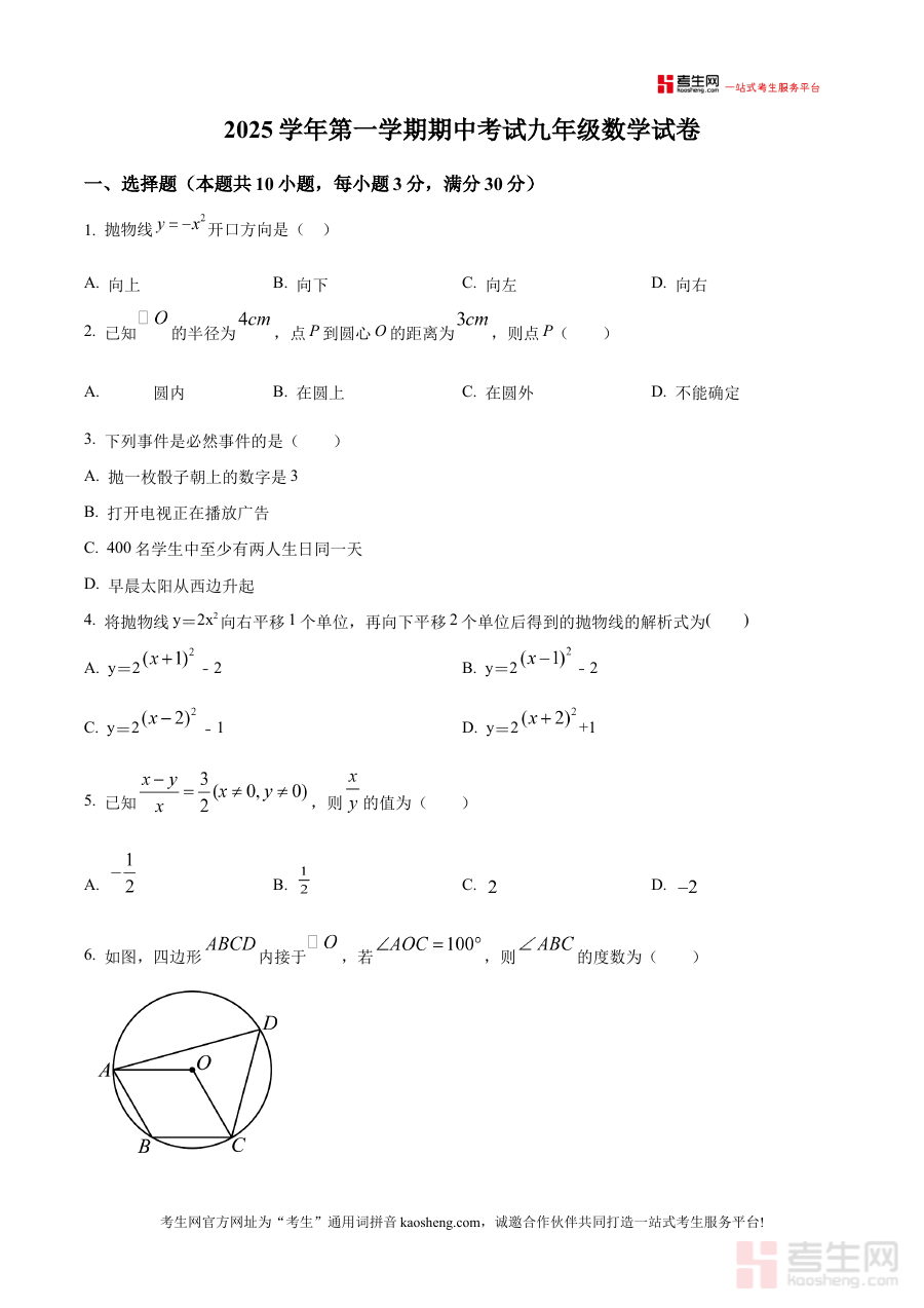 《精品解析:浙江省宁波市鄞州区2025-2026学年九年级上学期11月期中数学试题(原卷版)》是针对浙江省宁波市鄞州区2025-2026学年九年级上学期11月期中考试的数学学科备考资料,精准对应该地区该学年九年级上学期中期阶段的数学考试场景,为相关使用者提供贴合本地教学进度与考试要求的参考依据。