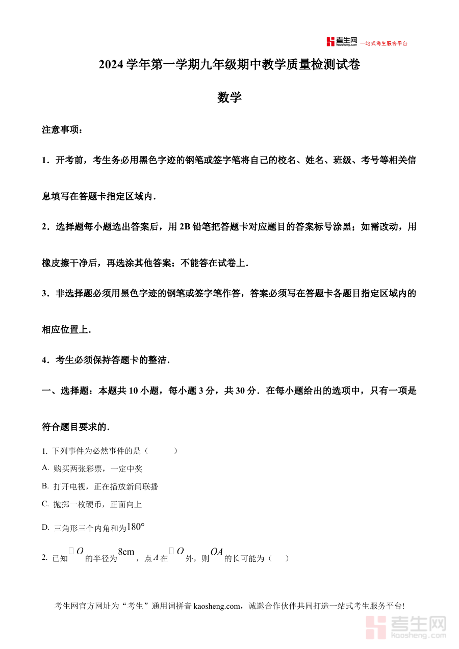 该资料可用于九年级学生进行期中阶段的学情诊断,帮助学生了解自身对数学知识的掌握情况,及时发现学习中的薄弱环节;同时也能为教师提供阶段检测的参考依据,辅助教师制定更贴合学生实际的备考规划,提升教学与复习的针对性和有效性。