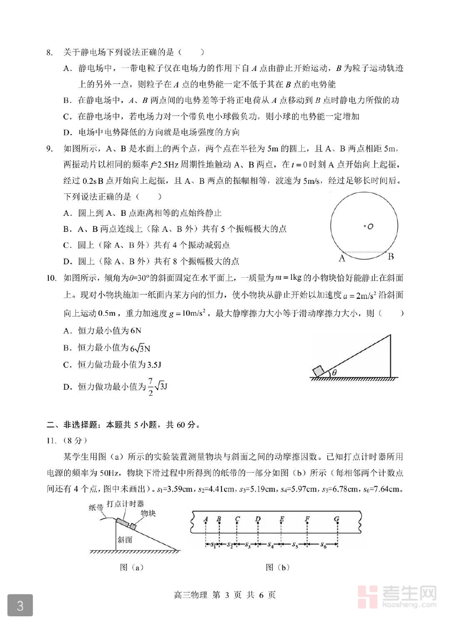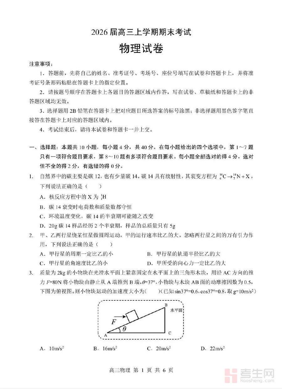 该资料可用于高三学生在联考前后进行自我学习情况诊断,帮助学生快速定位物理学科学习中的优势与不足;同时也能为教师提供阶段教学效果评估的参考素材,辅助教师优化后续备考计划与教学方法,确保教学方向与联考考查需求相匹配,助力师生共同提升阶段复习效率。
