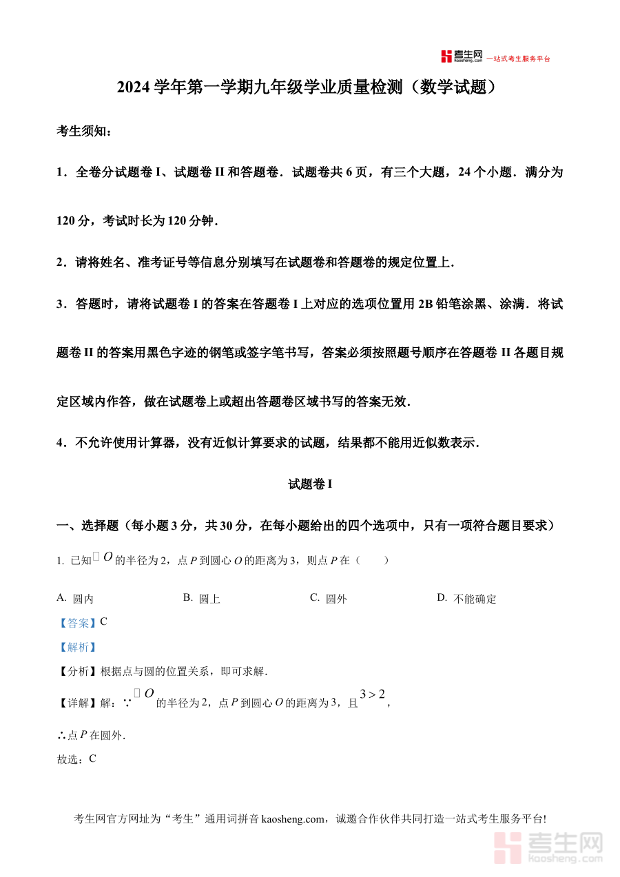 《精品解析:浙江省宁波市江北区2024-2025学年九年级上学期期末数学试卷(解析版)》是针对浙江省宁波市江北区2024至2025学年九年级上学期期末数学考试编制的备考资料,聚焦该地区九年级上学期数学学科的期末测评需求,为使用者提供与本地考试体系适配的学习参考。